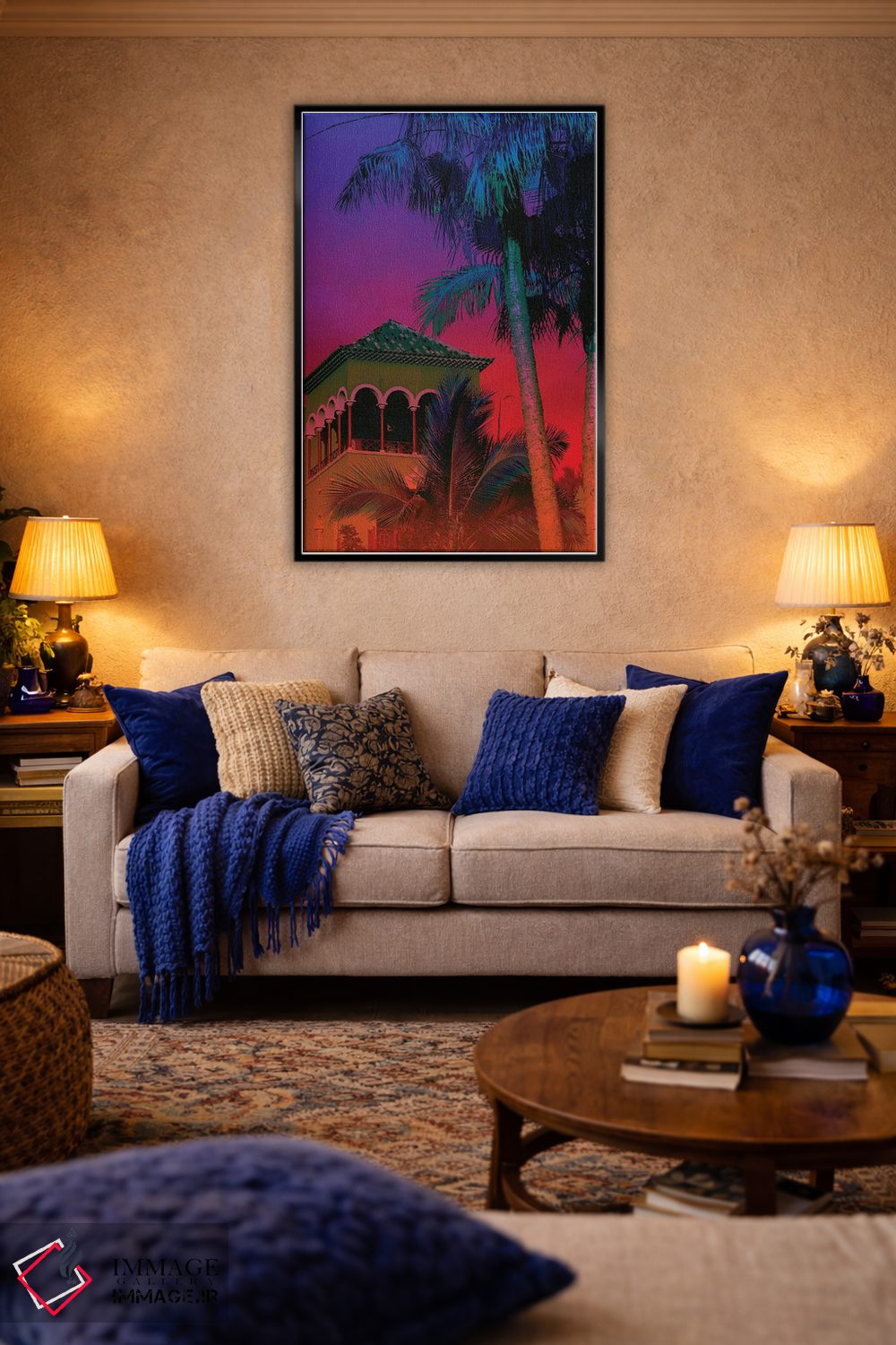 بوم گالری ایماژ طوری طراحی شده که اثر روی دیوار «پرداختشده» و حرفهای دیده شود—نه پرزرقوبرقِ بیپایه؛ بلکه دقیق و خوشپرداخت. بافت ظریف کنواس کمک میکند حس اثر هنری را در نگاه نزدیک نگه میدارد. قابپذیری کمک میکند هماهنگی قاب با پالت رنگ جلوه را تقویت میکند و همین «پرداخت» تفاوت را میسازد. این کیفیت برای دکورهای دقیقتر و پروژههای حرفهای خودش را بهتر نشان میدهد؛ در کنار نورپردازی درست، جلوهی گالریوار بیشتری حس میشود.