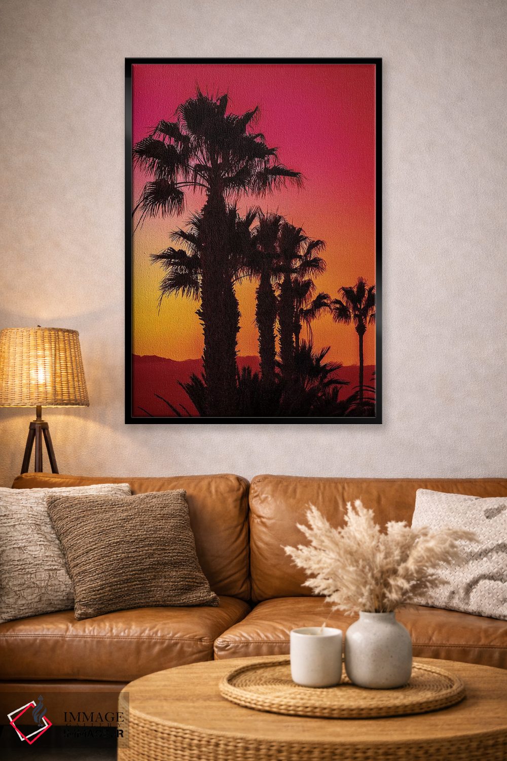 براساس پالت گرم اثر، قاب تیک گرم (چوبی) پیشنهاد اول است و مشکی مات (فریم متوسط) مکمل. برای سفارشهای پروژهای با ابعاد و قابهای اختصاصی با ایماژ در تماس باشید.