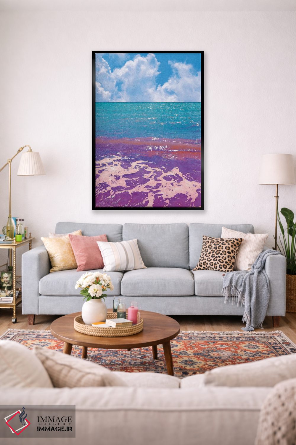 صورتی میتواند یک اکسنتِ کوچک اما موثر باشد؛ کوسن یا پاف را با صورتی تکرار کنید تا پالت «جمعوجورتر» شود. انتخاب قاب هم میتواند این اکسنت را تقویت کند.
