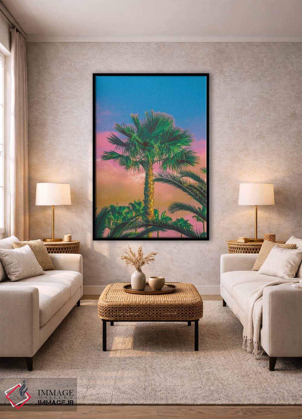 براساس پالت ترکیبی اثر، قاب تیک گرم (چوبی) پیشنهاد اول است و مشکی مات (فریم متوسط) مکمل. برای سفارشهای پروژهای با ابعاد و قابهای اختصاصی با ایماژ در تماس باشید.