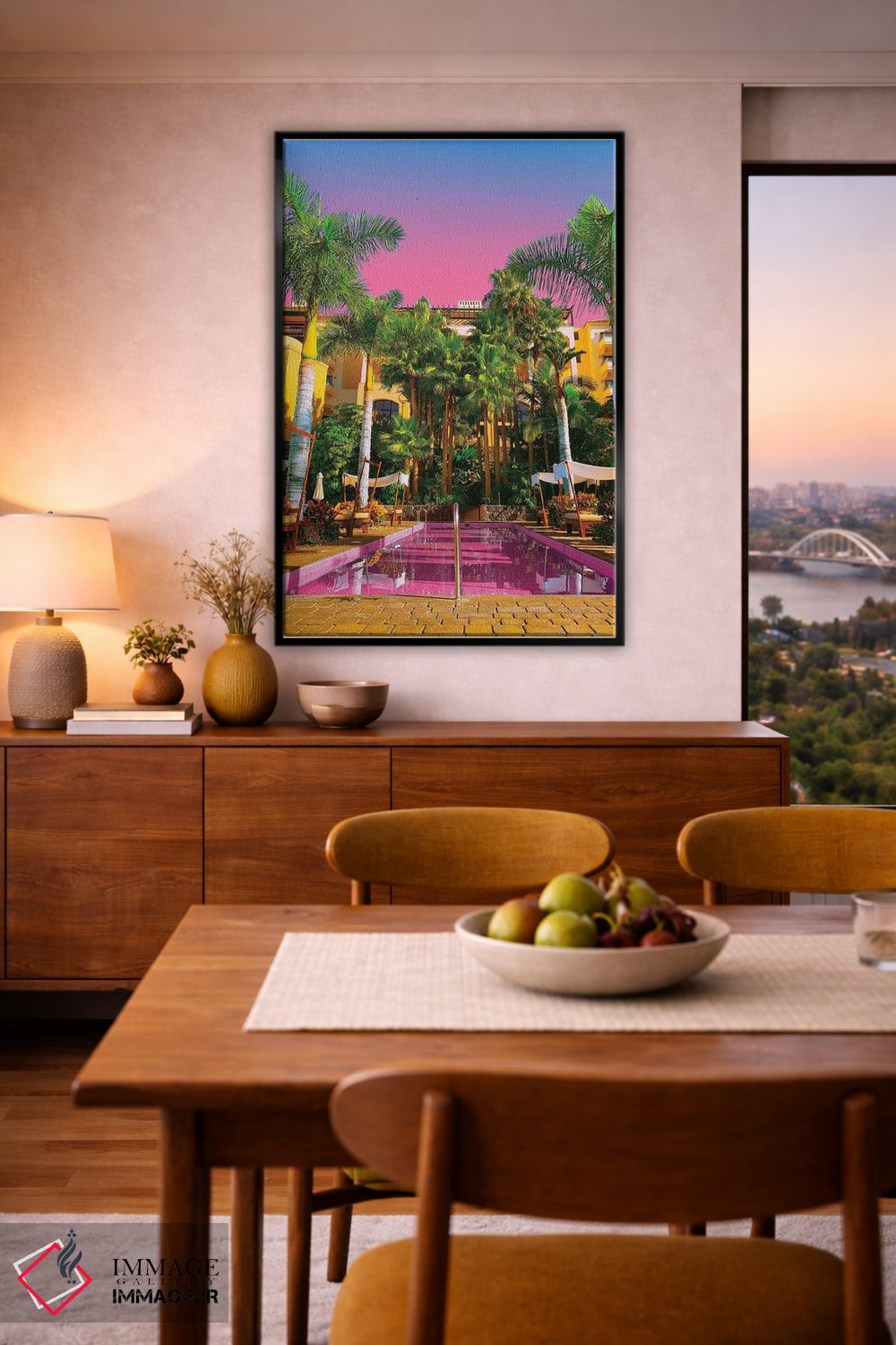 براساس پالت ترکیبی اثر، قاب تیک گرم (چوبی) پیشنهاد اول است و مشکی مات (فریم متوسط) مکمل. برای سفارشهای پروژهای با ابعاد و قابهای اختصاصی با ایماژ در تماس باشید.