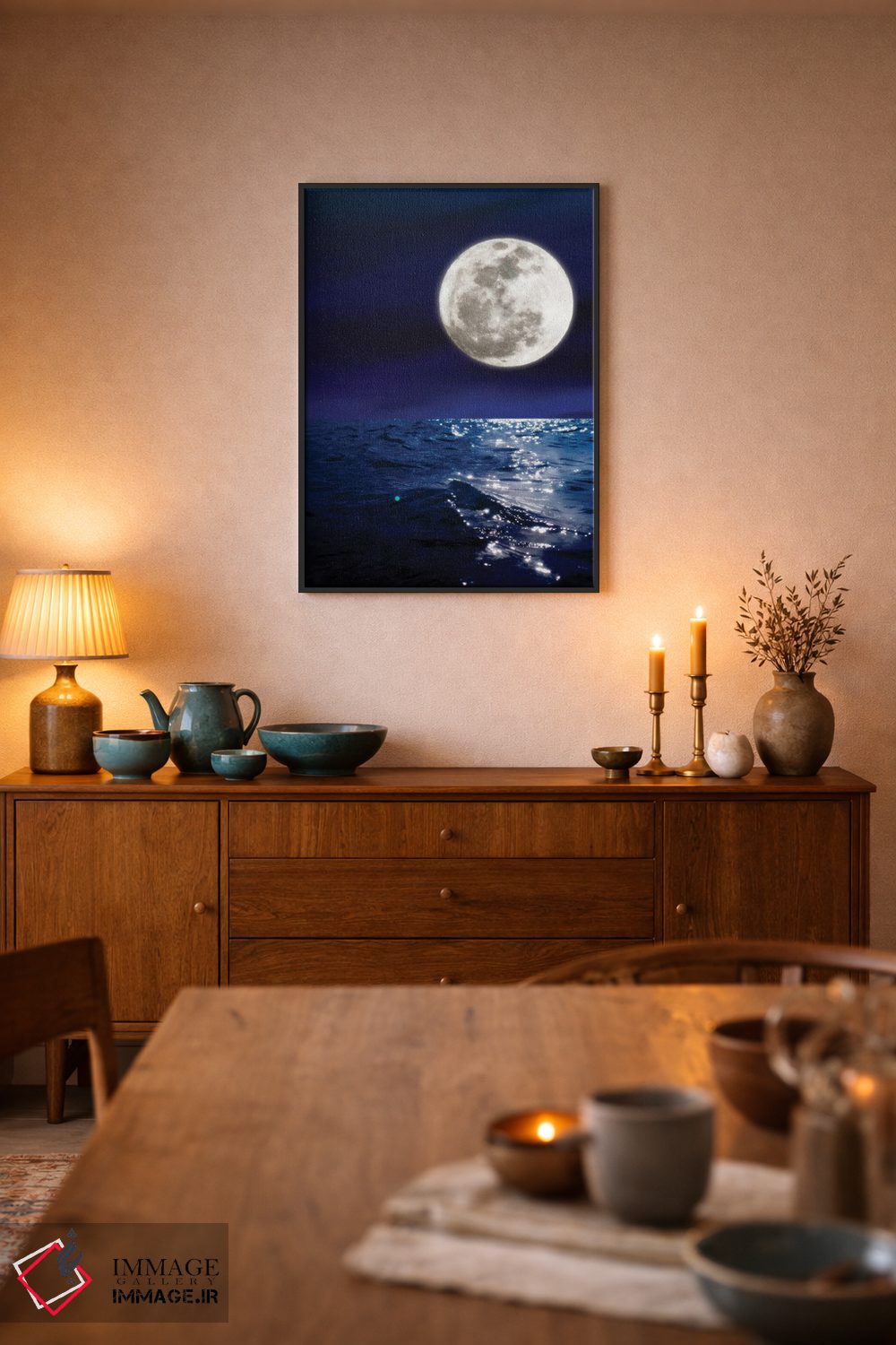 اگر میخواهید دیوار از «پسزمینه» بیرون بیاید، «مرا کنار ماه ملاقات کن» اثرِ «نیتن هد» دیوار را از تزئین به «حضور» تبدیل میکند؛ برای فضاهایی که میخواهید مرکز توجه داشته باشند پیشنهاد میشود. روی دیوار، طبیعی و متعادل دیده میشود—بیاغراق و درست.