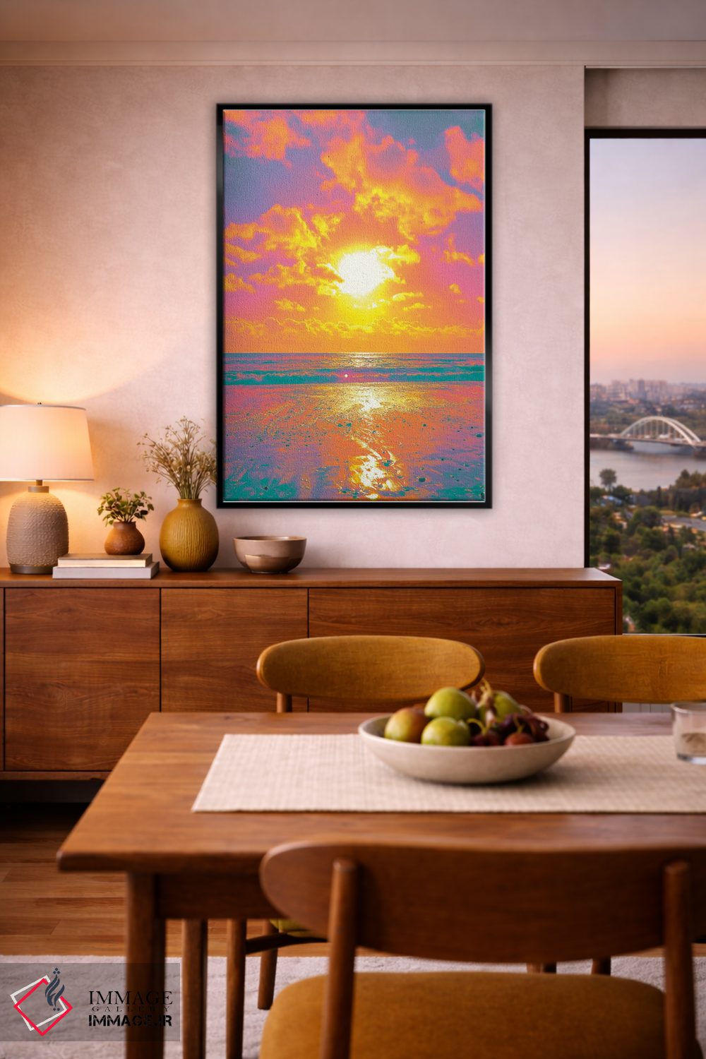 بوم گالری ایماژ طوری طراحی شده که اثر روی دیوار «پرداختشده» و حرفهای دیده شود—نه پرزرقوبرقِ بیپایه؛ بلکه دقیق و خوشپرداخت. بافت ظریف کنواس باعث میشود حس اثر هنری را در نگاه نزدیک نگه میدارد و همین «پرداخت» تفاوت را میسازد. کنترل تونها باعث میشود تعادل بهتری بین نور و رنگ ایجاد میکند و برای فضاهای رسمیتر هم انتخاب مطمئنی است. این کیفیت برای دکورهای دقیقتر و پروژههای حرفهای خودش را بهتر نشان میدهد؛ برای هدیهی هنری هم انتخاب محترمانهای است. برای پروژههای معماری داخلی، انتخاب اندازه و قاب را میتوان دقیقتر هماهنگ کرد.