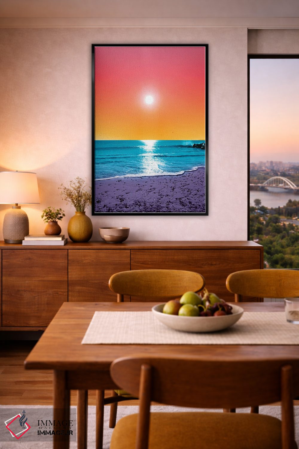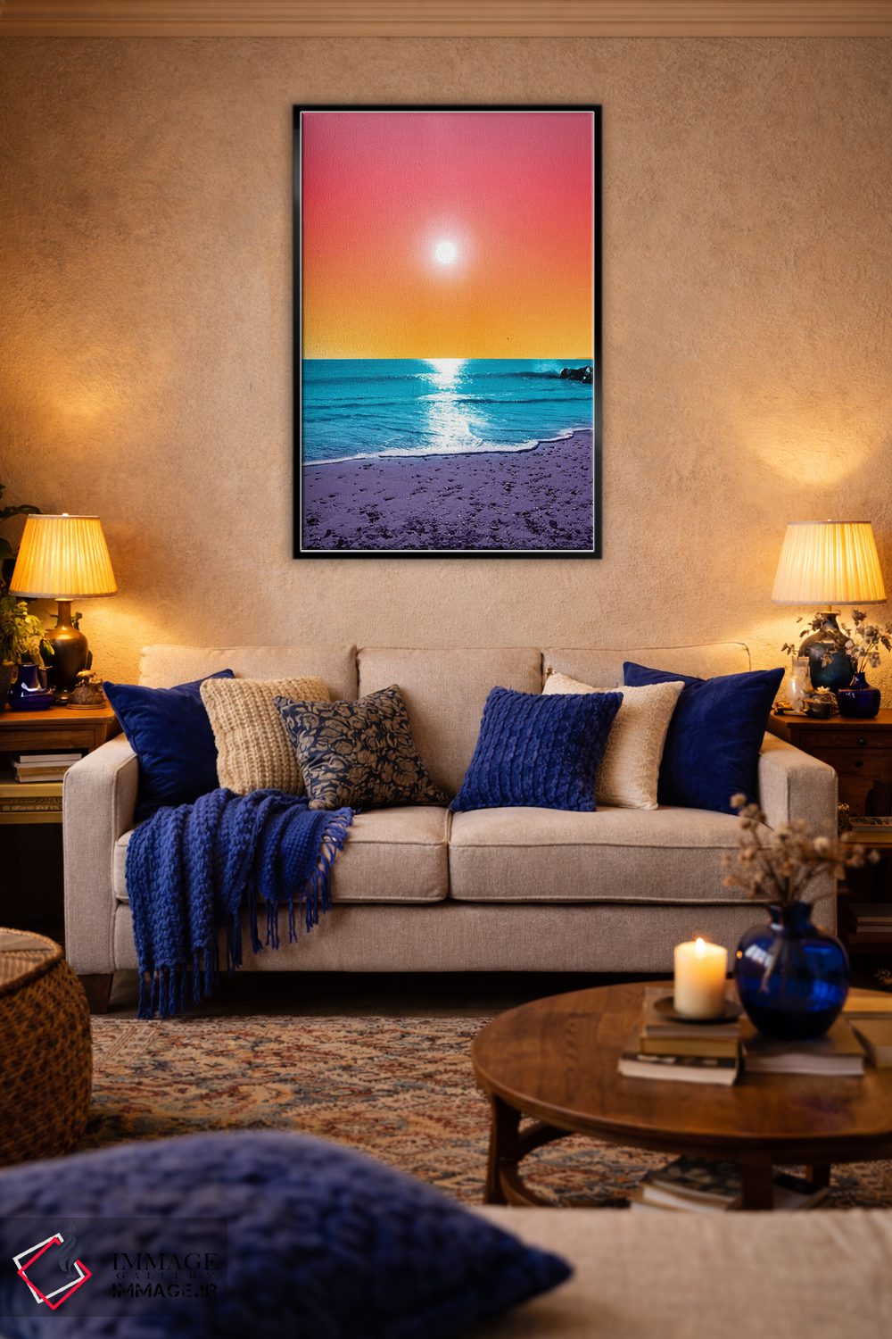بوم گالری ایماژ نسخهی دکوراتیوِ سطحبالا از یک اثر هنری است؛ روی کنواس سفیدِ یکدست و بدون اسید با فرآیند چاپ حرفهای جیکلی (Giclée) و کنترل دقیق تونها با رنگدانههای آرشیوی و سیستم رنگ دقیق، این ترکیب باعث میشود گذارهای رنگی نرمتر و بافتها خواناتر شوند. اسمبل تمیز و آمادهی نصب؛ کشیدگی استاندارد روی کلاف و یراق مناسب.