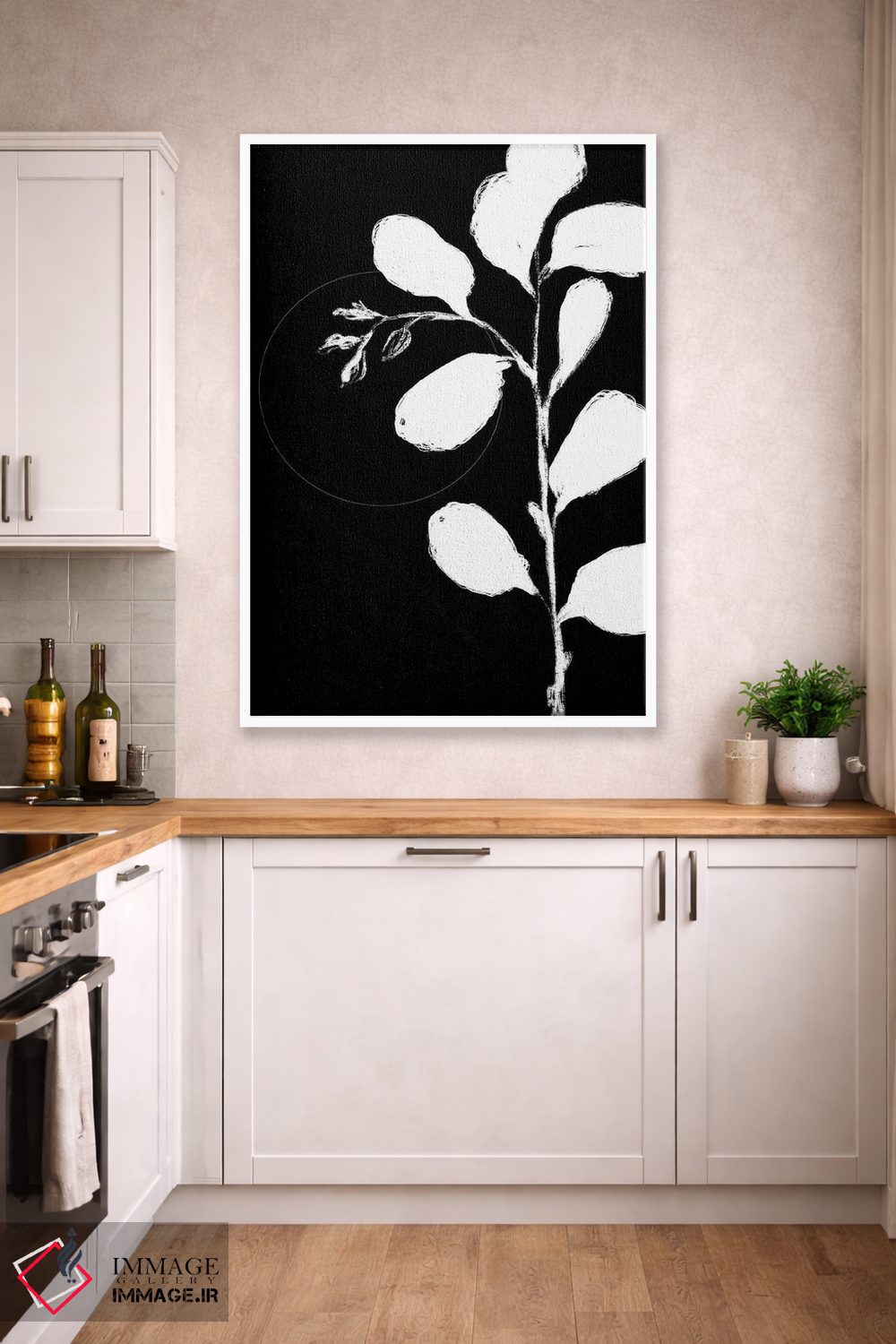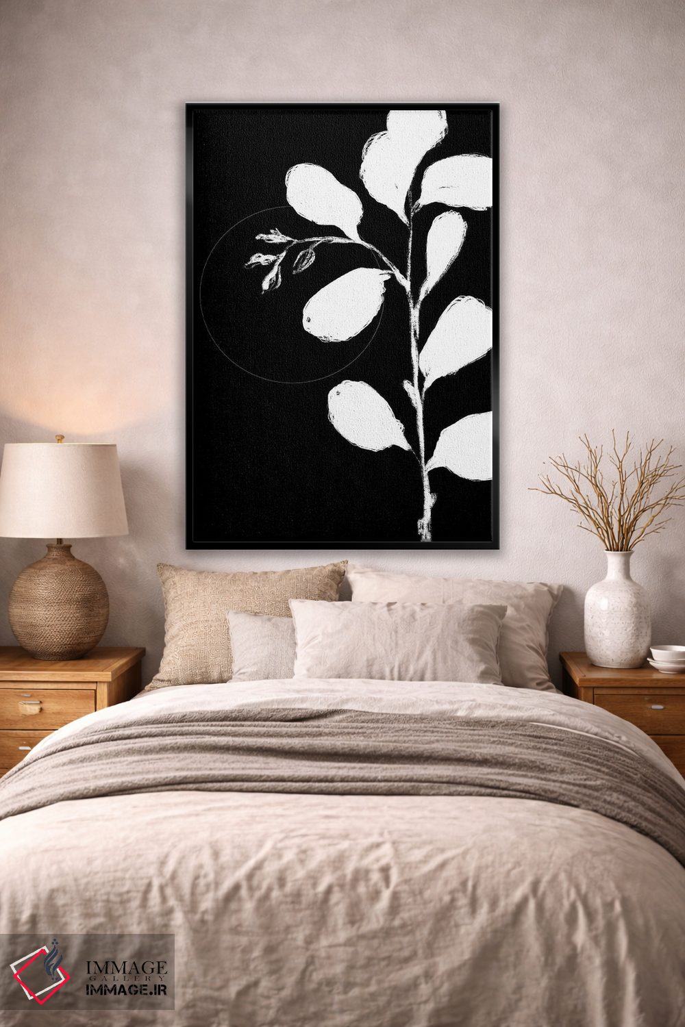 تابلو مینیمال نمای سیلوئت گیاهی ۲ اثر نیکلاس هولمن - نمای نزدیک بافت بوم