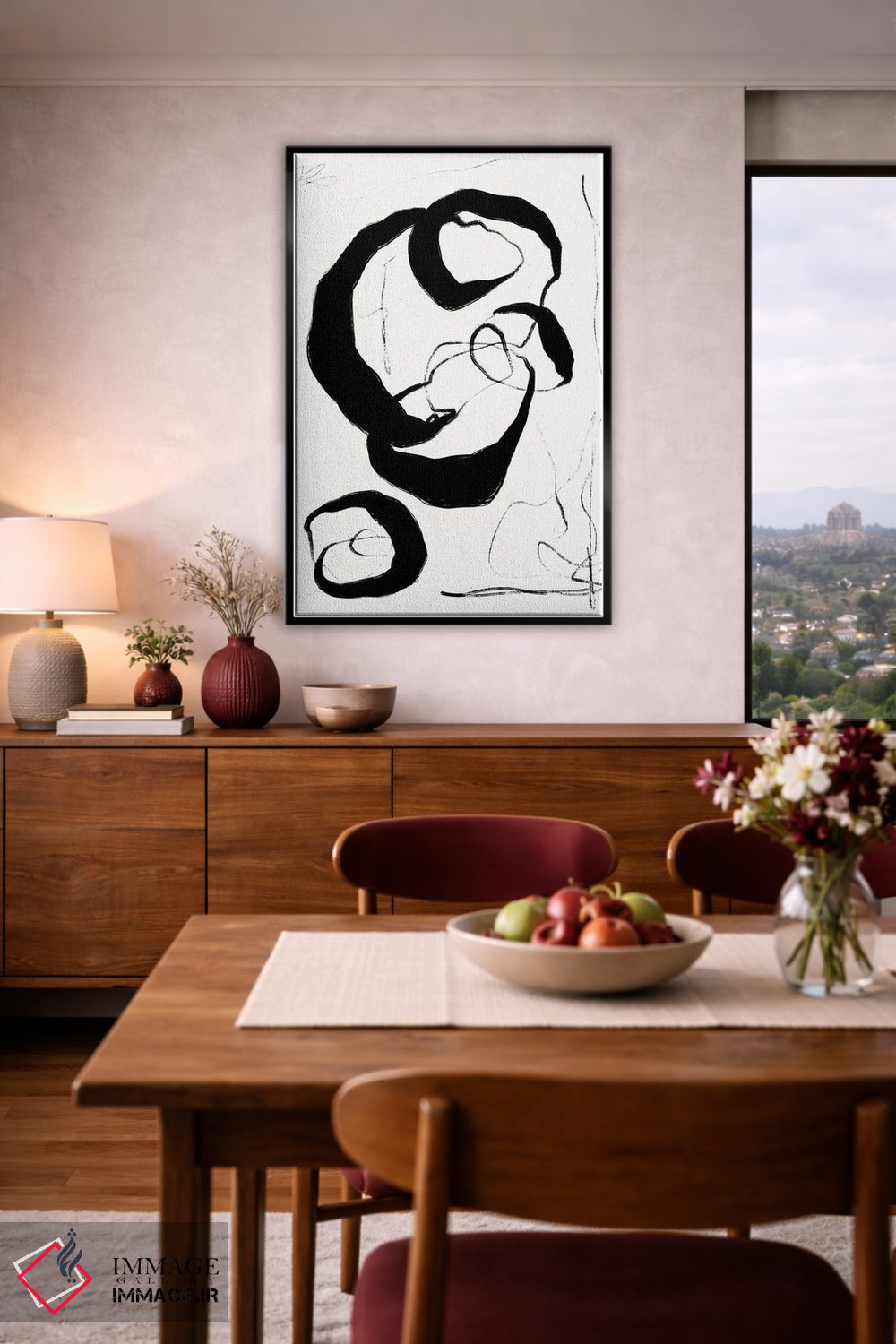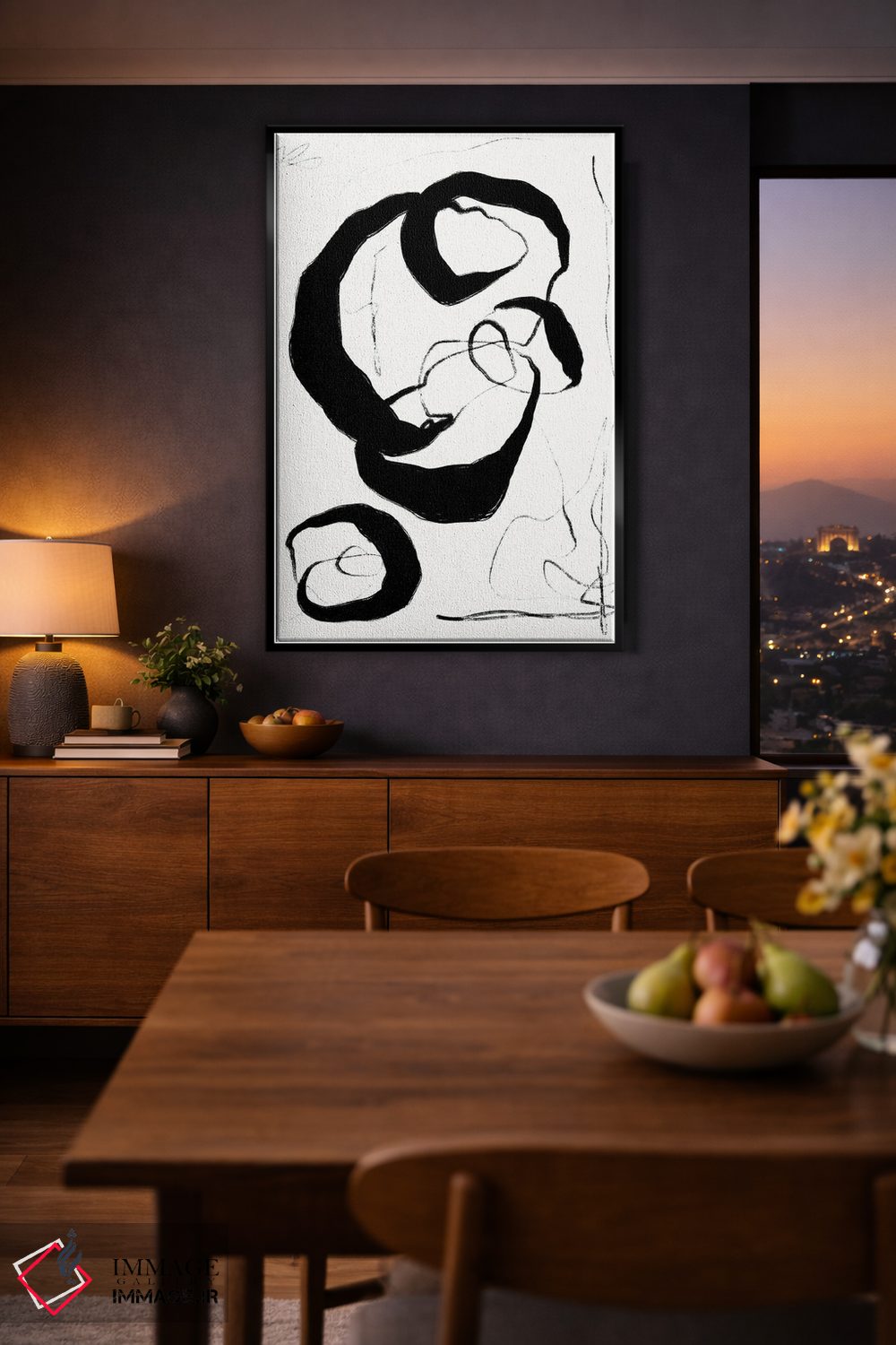 براساس پالت خنثی اثر، قاب مشکی مات (فریم باریک) پیشنهاد اول است و سفید مات (فریم باریک) مکمل. برای سفارشهای پروژهای با ابعاد و قابهای اختصاصی با ایماژ در تماس باشید.