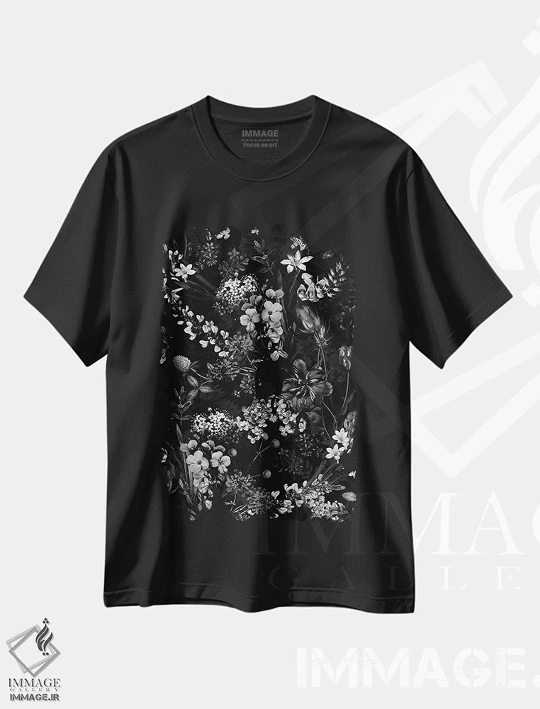 تیشرت مشکی طرح دار گل تیره II، دکوراسیون جایگزین اثر برجو کورکماز یورک | immage.ir