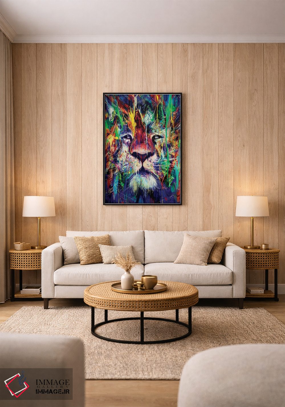 برای دیوارهای ساده، «شیر I» اثرِ «نایسبلید» در کنار رنگهای خنثی، تضاد دلچسبی میسازد؛ برای اتاق بازی یا گوشهٔ مطالعه انتخابی خوشسلیقه است. با نورپردازی نقطهای، جذابتر هم میشود.