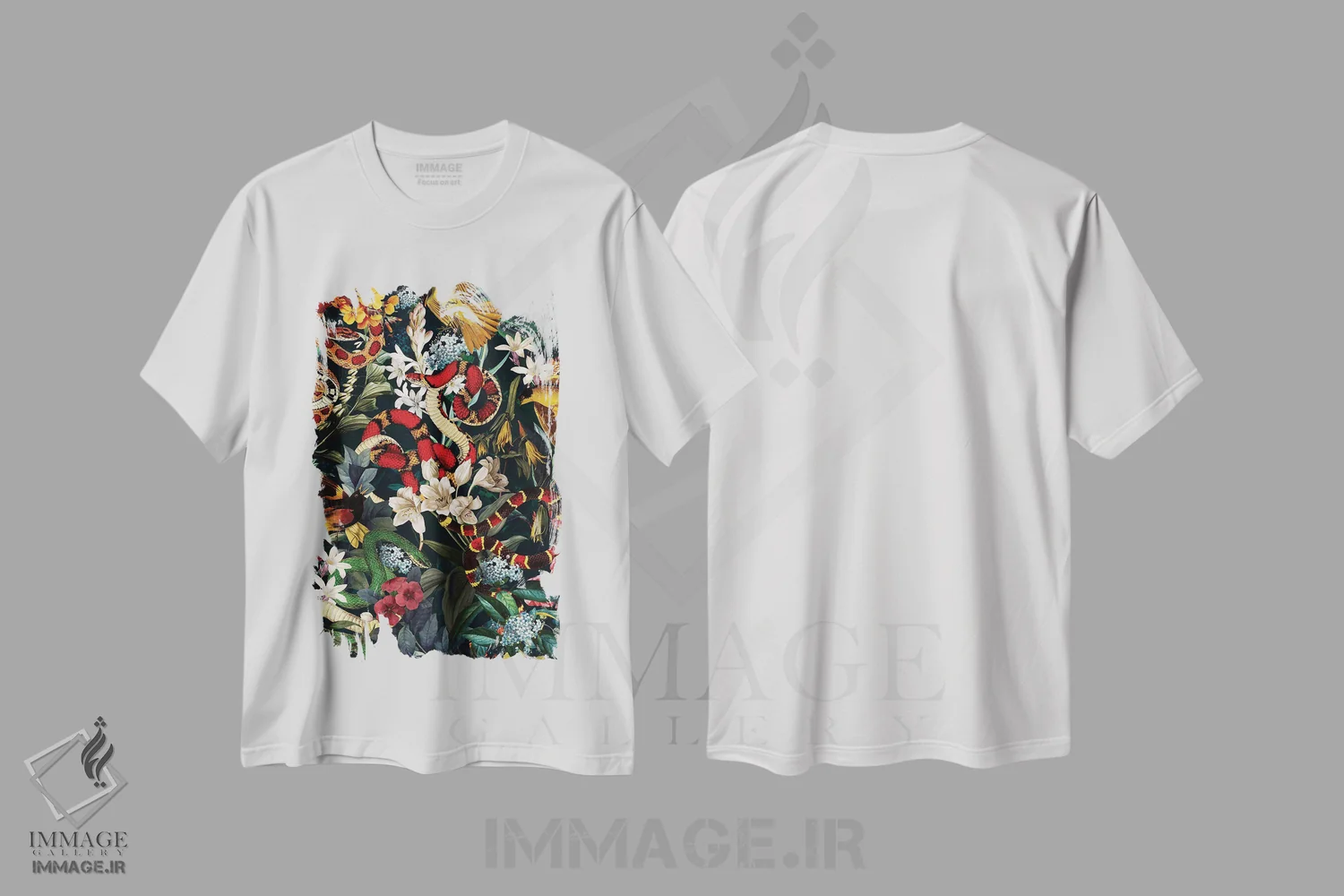 تی شرت هنری «پرندگان و مارها II»؛ تضاد طبیعت و جسارت بصری
