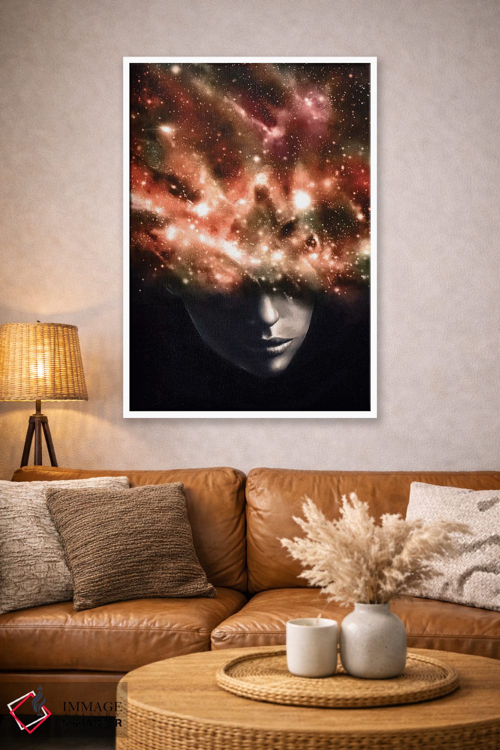 بوم گالری ایماژ نسخهی چیدماناتیوِ گالریپسند از یک اثر هنری است؛ روی کنواس بدون اسید با بافت ظریف و یکنواخت با اجرای چاپ هنری جیکلی (Giclée) برای آرتپرینتهای جدی با جوهرهای آرشیویِ حرفهای برای لایههای رنگی خواناتر، حس نهایی نزدیکتر به ارائهی گالریوار است؛ نه صرفاً یک تصویر.