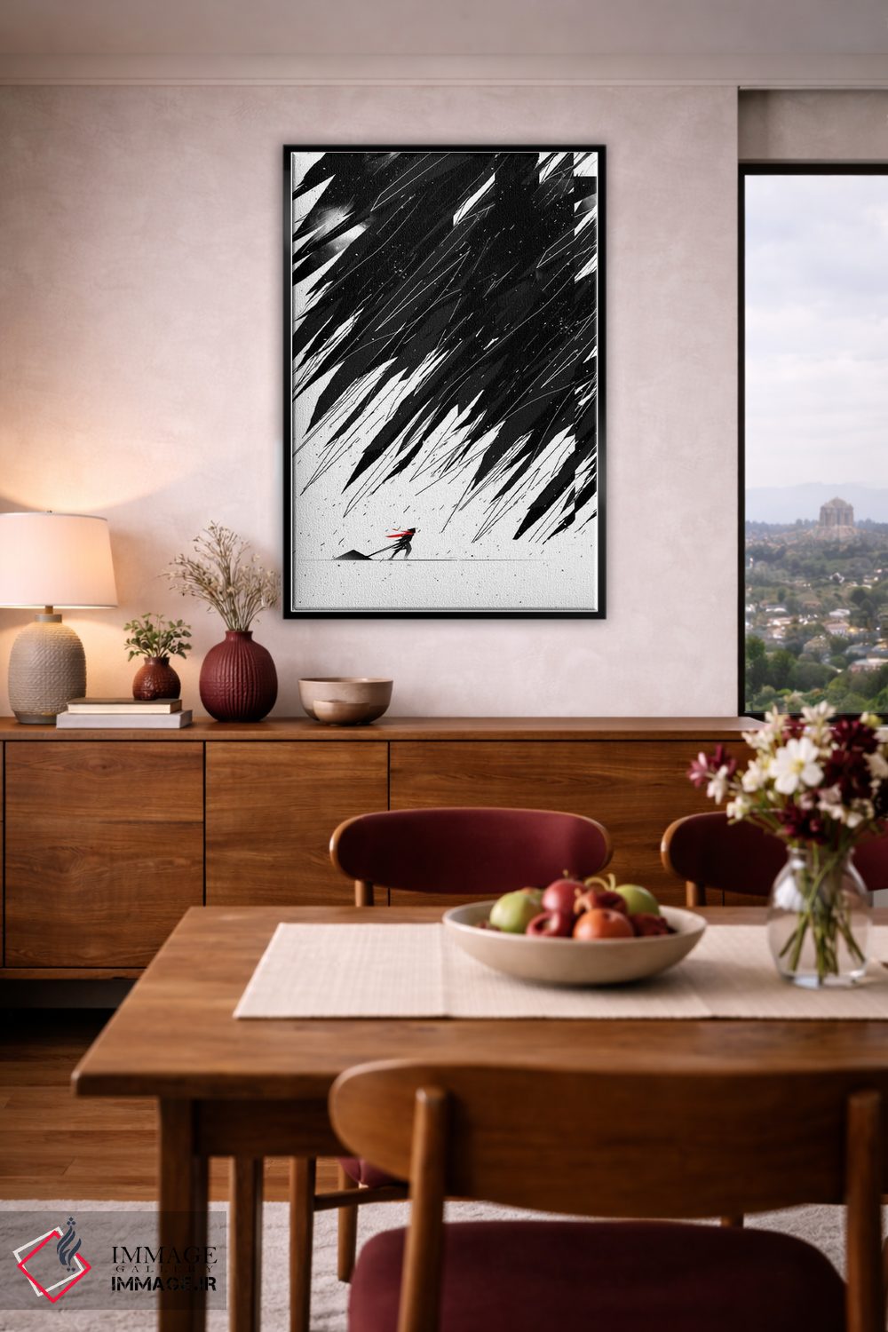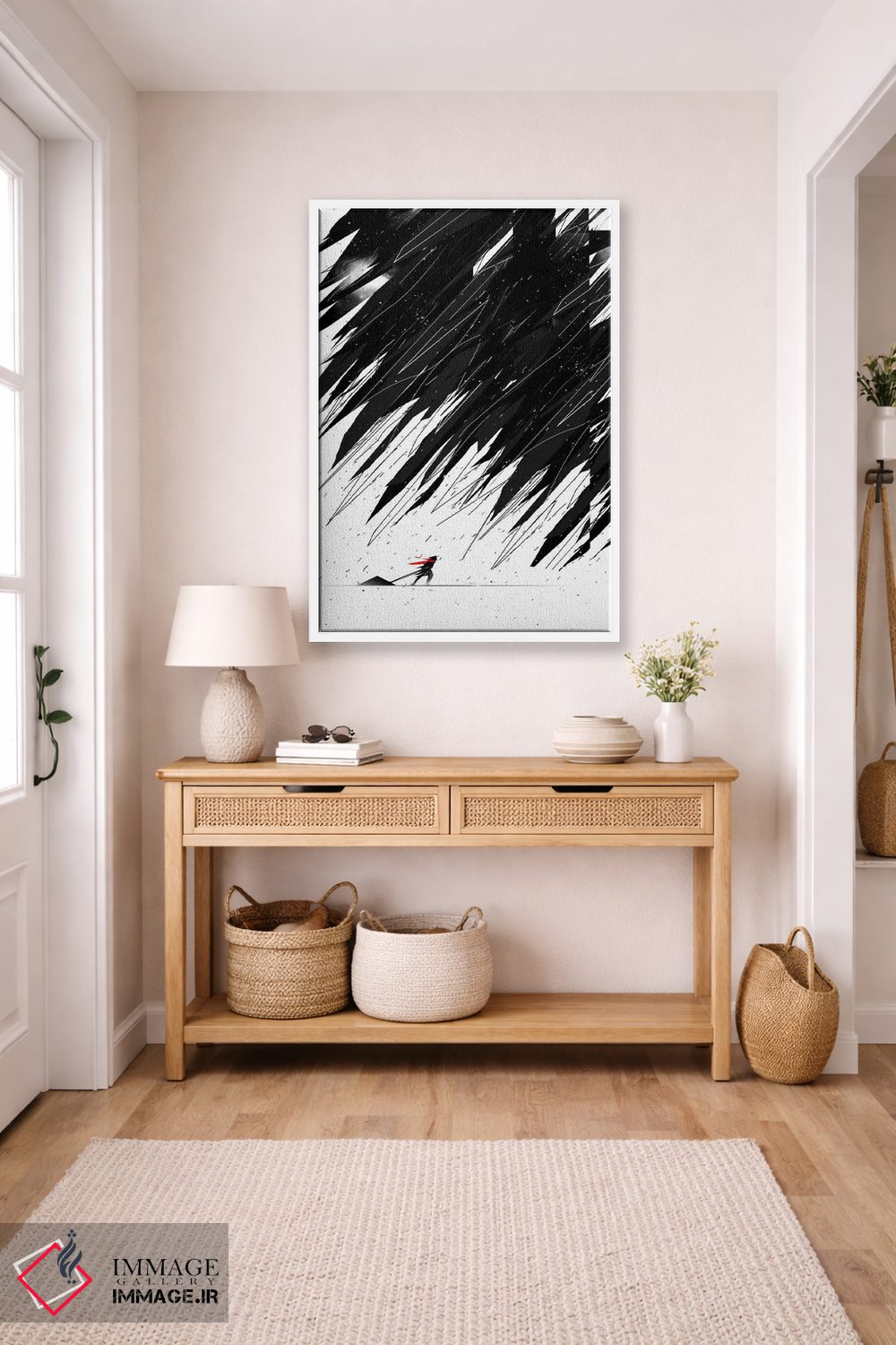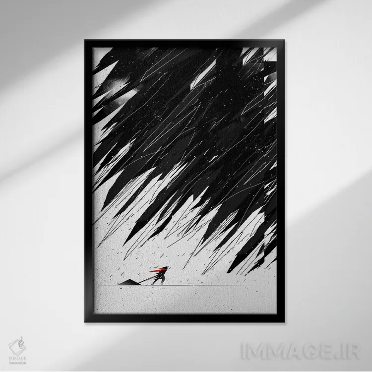 تابلو دکوراتیو طوفان هندسی اثر نایس بلید - نمای قاب‌دار مشکی