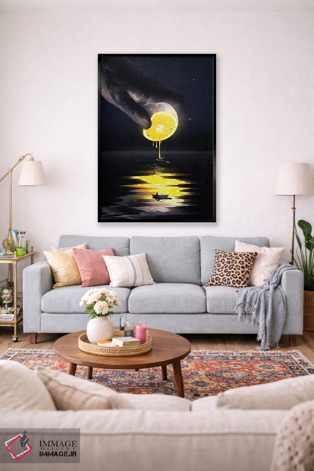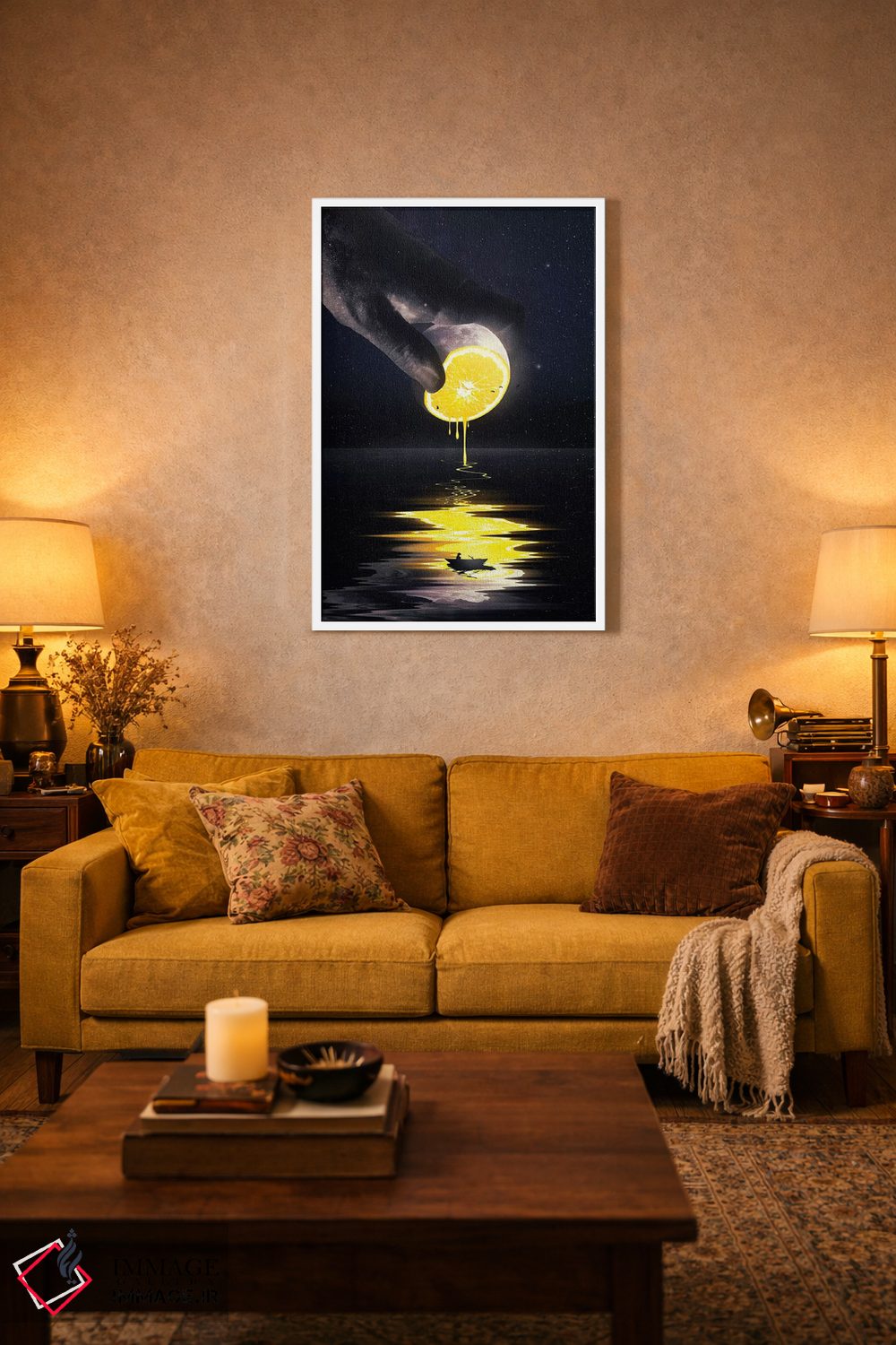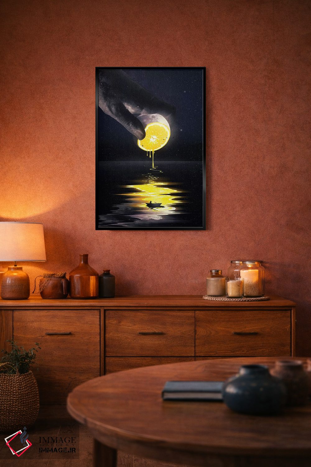 براساس پالت ترکیبی اثر، قاب تیک گرم (چوبی) پیشنهاد اول است و مشکی مات (فریم متوسط) مکمل. برای سفارشهای پروژهای با ابعاد و قابهای اختصاصی با ایماژ در تماس باشید.