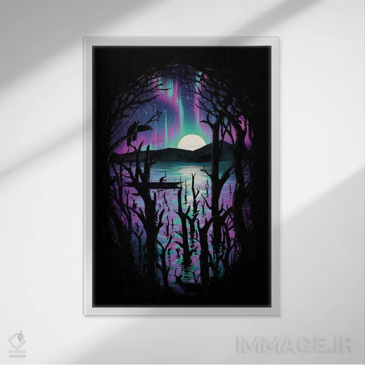 تابلو دکوراتیو شب با شفق قطبی اثر نایس بلید