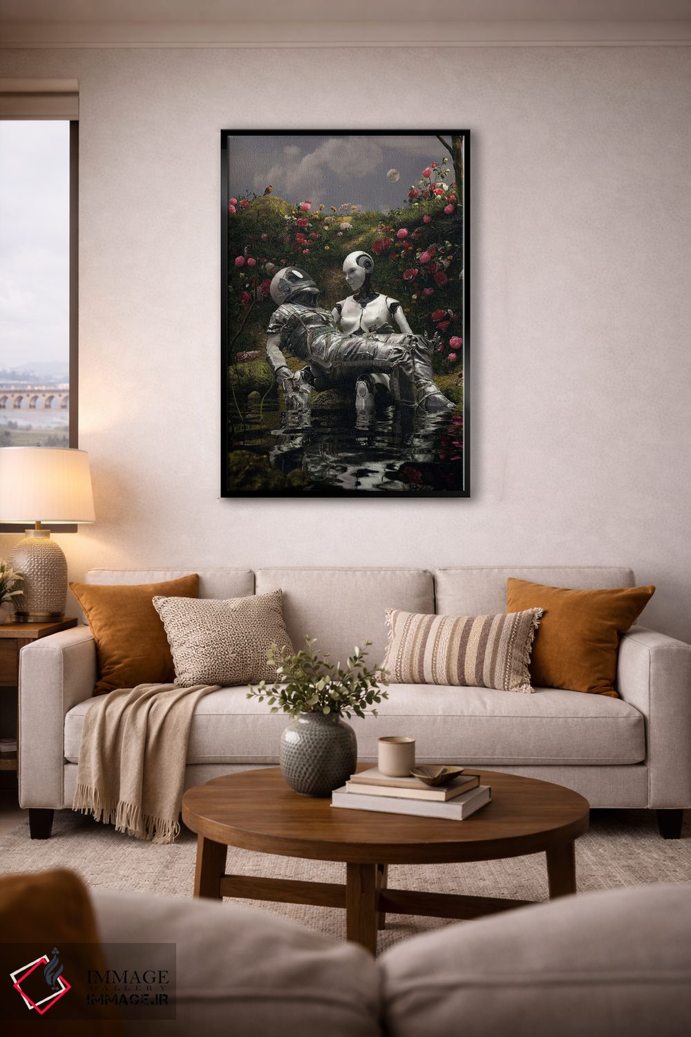 براساس پالت گرم اثر، قاب تیک گرم (چوبی) پیشنهاد اول است و مشکی مات (فریم متوسط) مکمل. برای سفارشهای پروژهای با ابعاد و قابهای اختصاصی با ایماژ در تماس باشید.