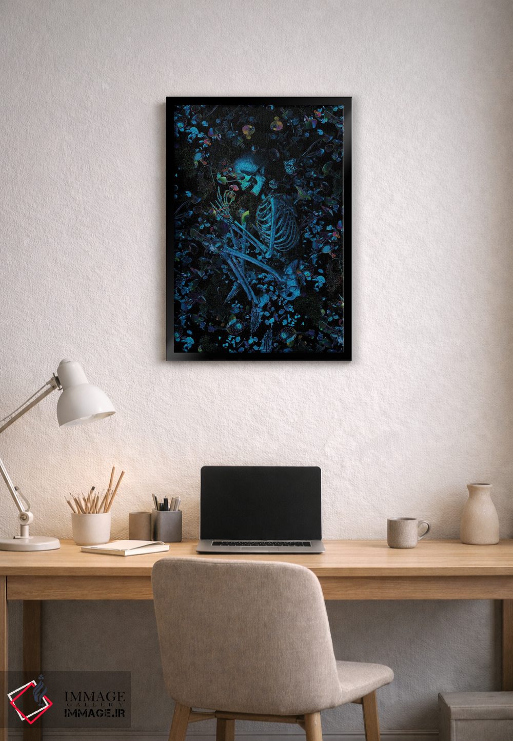 براساس پالت سرد اثر، قاب سفید مات (فریم باریک) پیشنهاد اول است و نقرهای برسخورده (متالیک) مکمل. برای سفارشهای پروژهای با ابعاد و قابهای اختصاصی با ایماژ در تماس باشید.