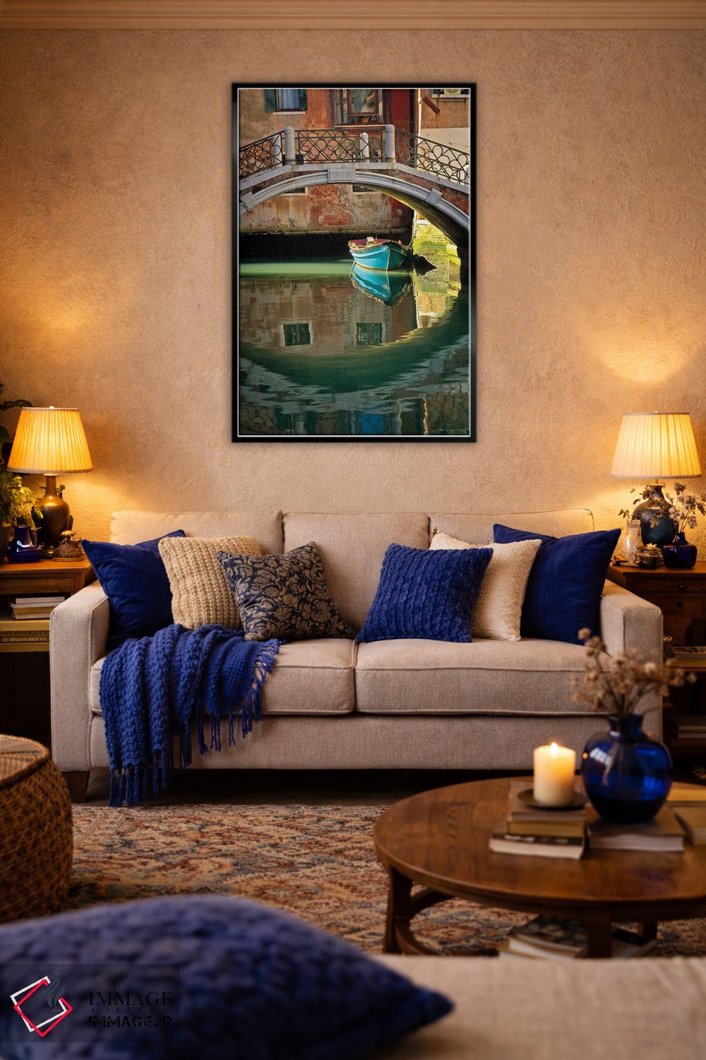 این تابلو با عنوان «Venice، Italy، فرار کازانووا، ونیز، ایتالیا» اثرِ «جیم نیلسن» جلوهٔ اتاق را یک پله حرفهایتر میکند؛ برای اتاق کار و گوشهٔ مطالعه پیشنهاد میشود. فضا را شلوغ نمیکند؛ فقط دقیقترش میکند.