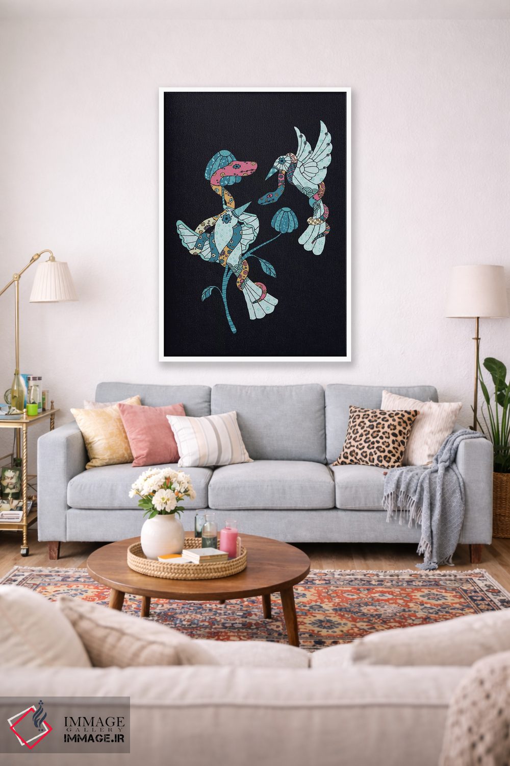 بوم گالری ایماژ طوری طراحی شده که اثر روی دیوار «پرداختشده» و حرفهای دیده شود—نه پرزرقوبرقِ بیپایه؛ بلکه دقیق و خوشپرداخت. بافت ظریف کنواس کمک میکند حس اثر هنری را در نگاه نزدیک نگه میدارد و در دکورهای مدرن و مینیمال خیلی خوب مینشیند. با چاپ جیکلی (Giclée)، گرباورهاها را تمیزتر و طبیعیتر نشان میدهد و نتیجه را یکدستتر میکند. حاصل کار، یک تابلو خوشنشین است که هم از دور اثرگذار است و هم از نزدیک خوشخوان؛ و اگر بخواهید، میتوان چیدمان را برای گالریوال هم پیشنهاد داد. اگر یک اکسنت رنگی کوچک در اکسسوریها تکرار شود، هماهنگی فضا کاملتر میشود.