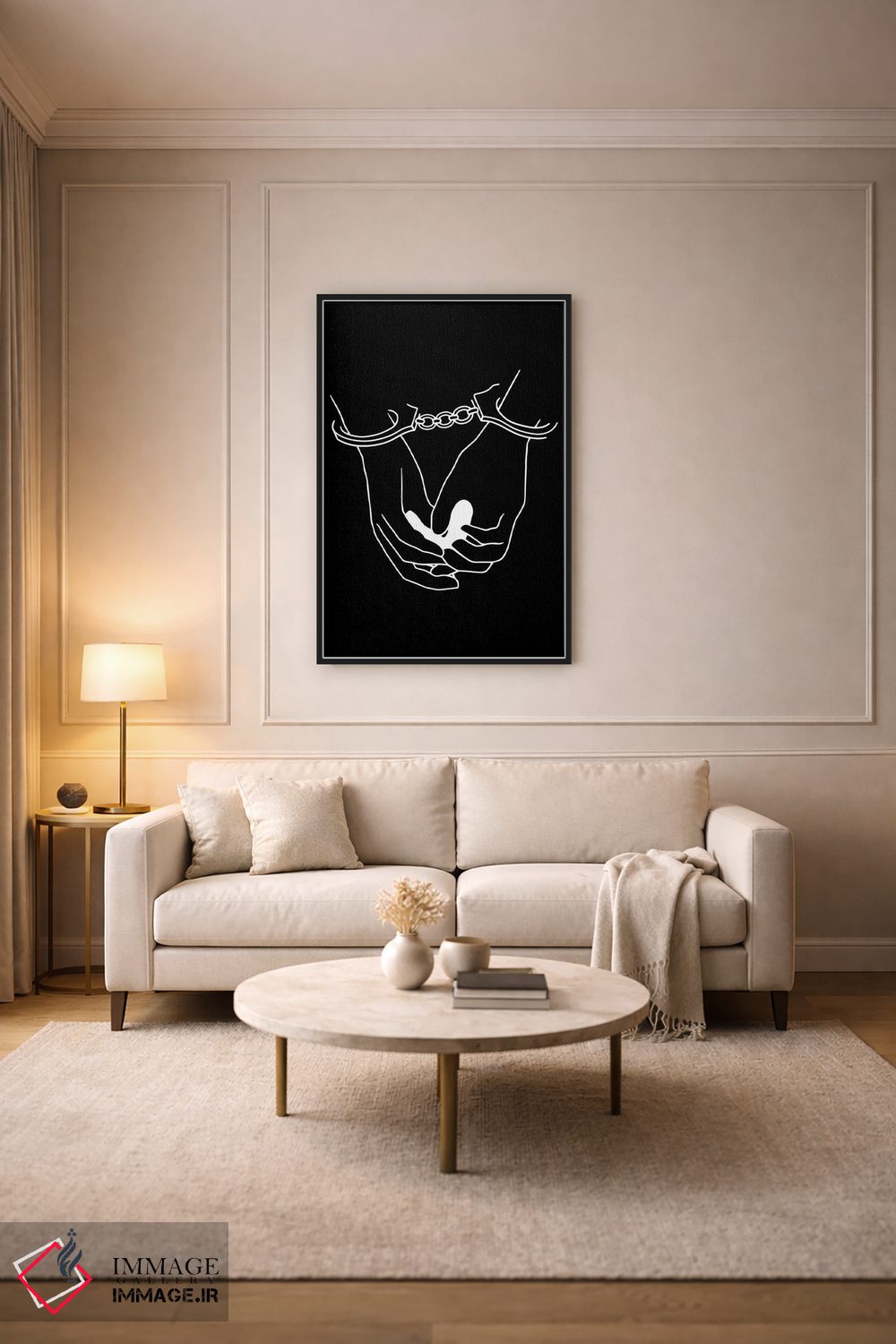 براساس پالت خنثی اثر، قاب مشکی مات (فریم باریک) پیشنهاد اول است و سفید مات (فریم باریک) مکمل. برای سفارشهای پروژهای با ابعاد و قابهای اختصاصی با ایماژ در تماس باشید.