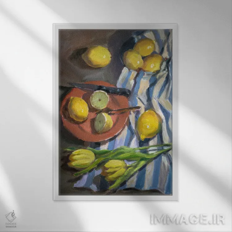 براساس پالت ترکیبی اثر، قاب تیک گرم (چوبی) پیشنهاد اول است و مشکی مات (فریم متوسط) مکمل. برای سفارشهای پروژهای با ابعاد و قابهای اختصاصی با ایماژ در تماس باشید.