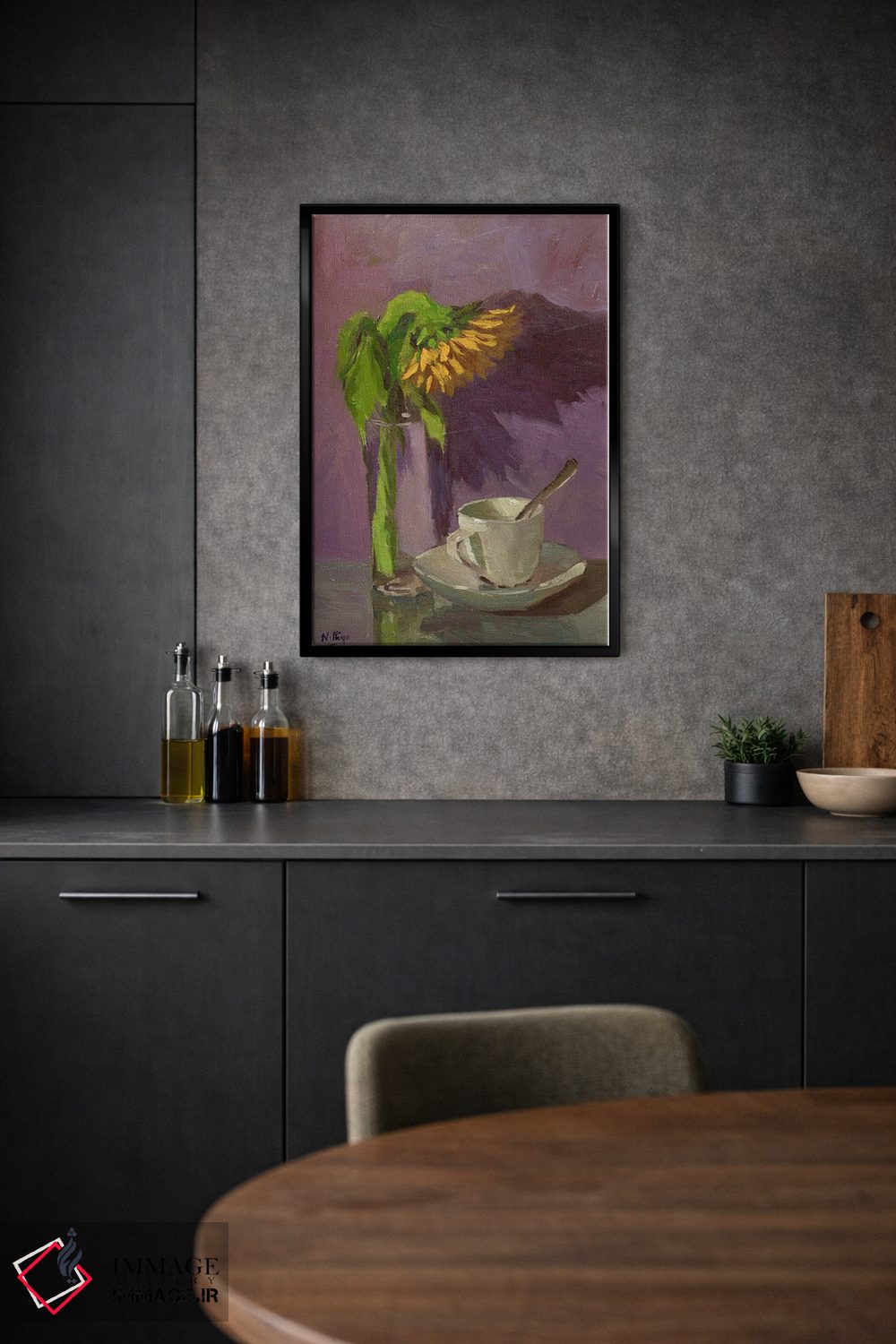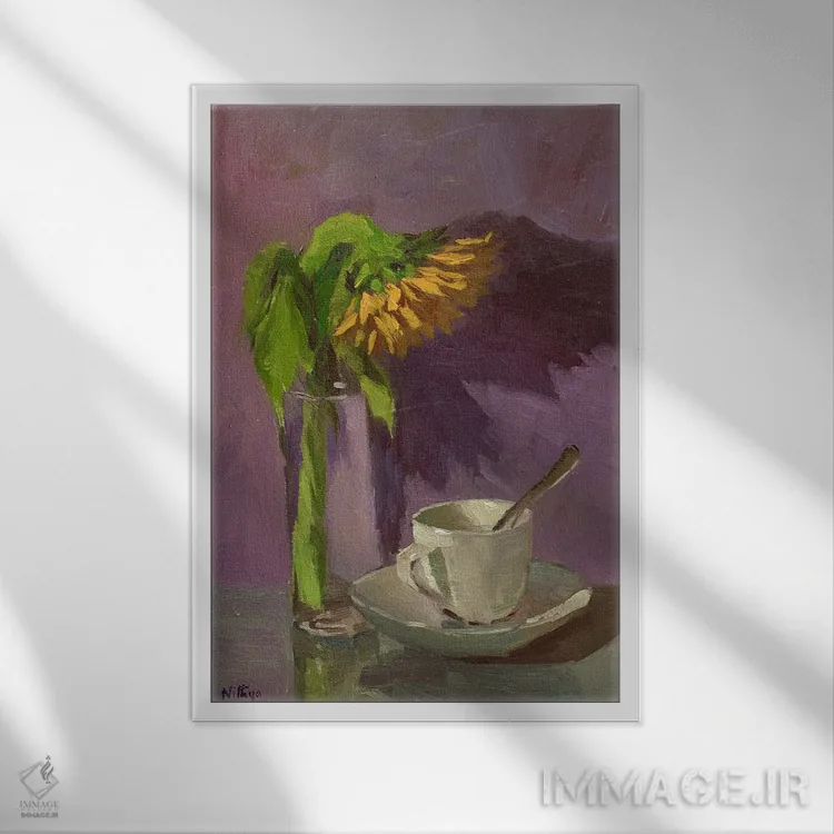 تابلو دکوراتیوِ «یک آفتابگردان و یک فنجان» با موضوعِ این اثر؛ مناسب برای نشیمن، اتاق خواب یا دیوار کنار میز ناهارخوری اثرِ «نیتیا سوامیناتان».