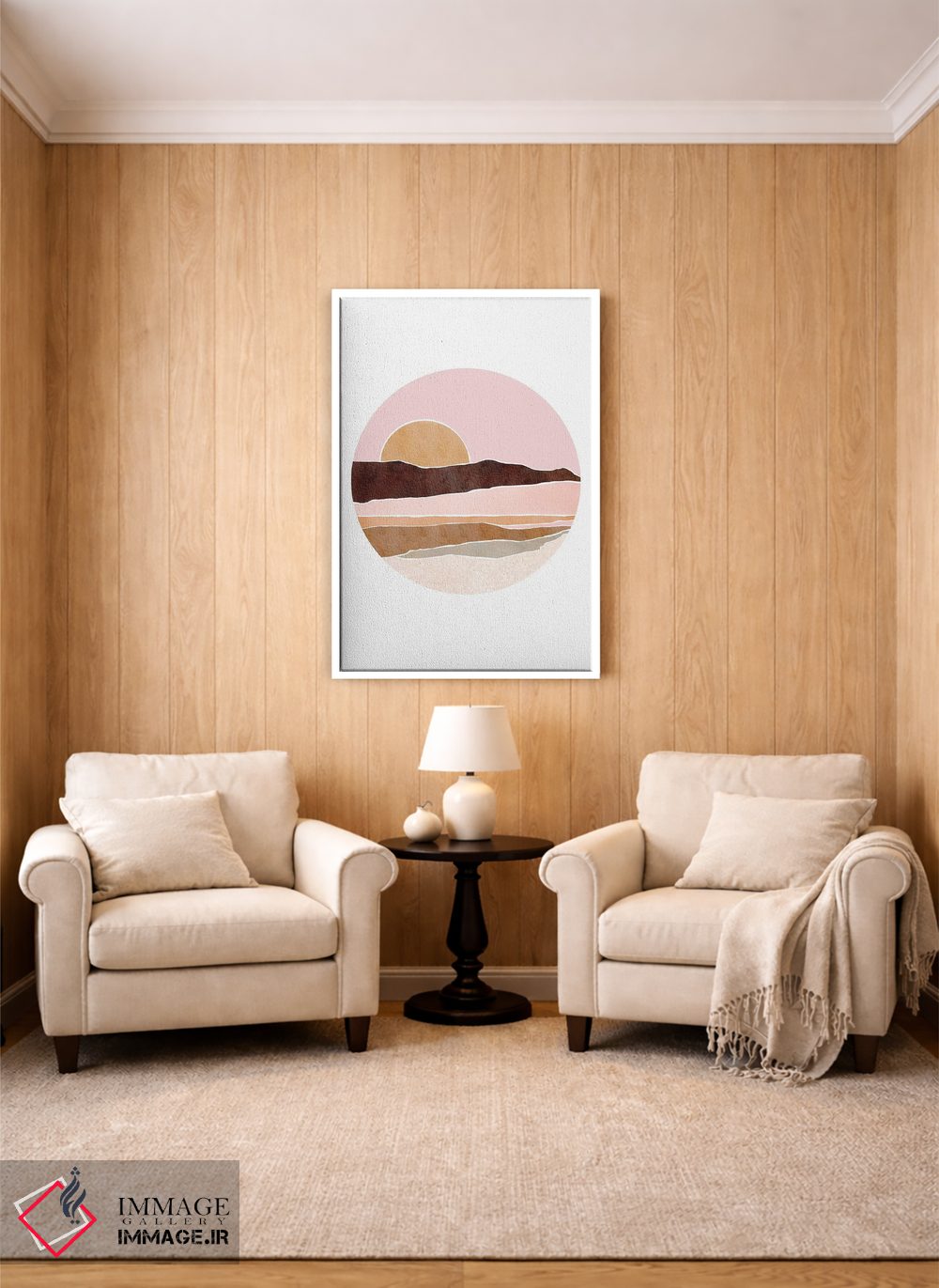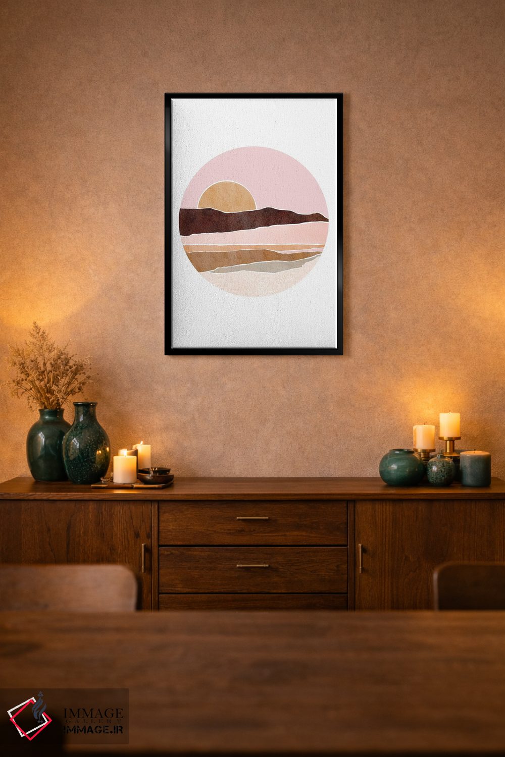 براساس پالت گرم اثر، قاب تیک گرم (چوبی) پیشنهاد اول است و مشکی مات (فریم متوسط) مکمل. برای سفارشهای پروژهای با ابعاد و قابهای اختصاصی با ایماژ در تماس باشید.
