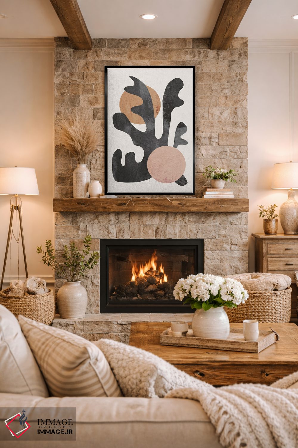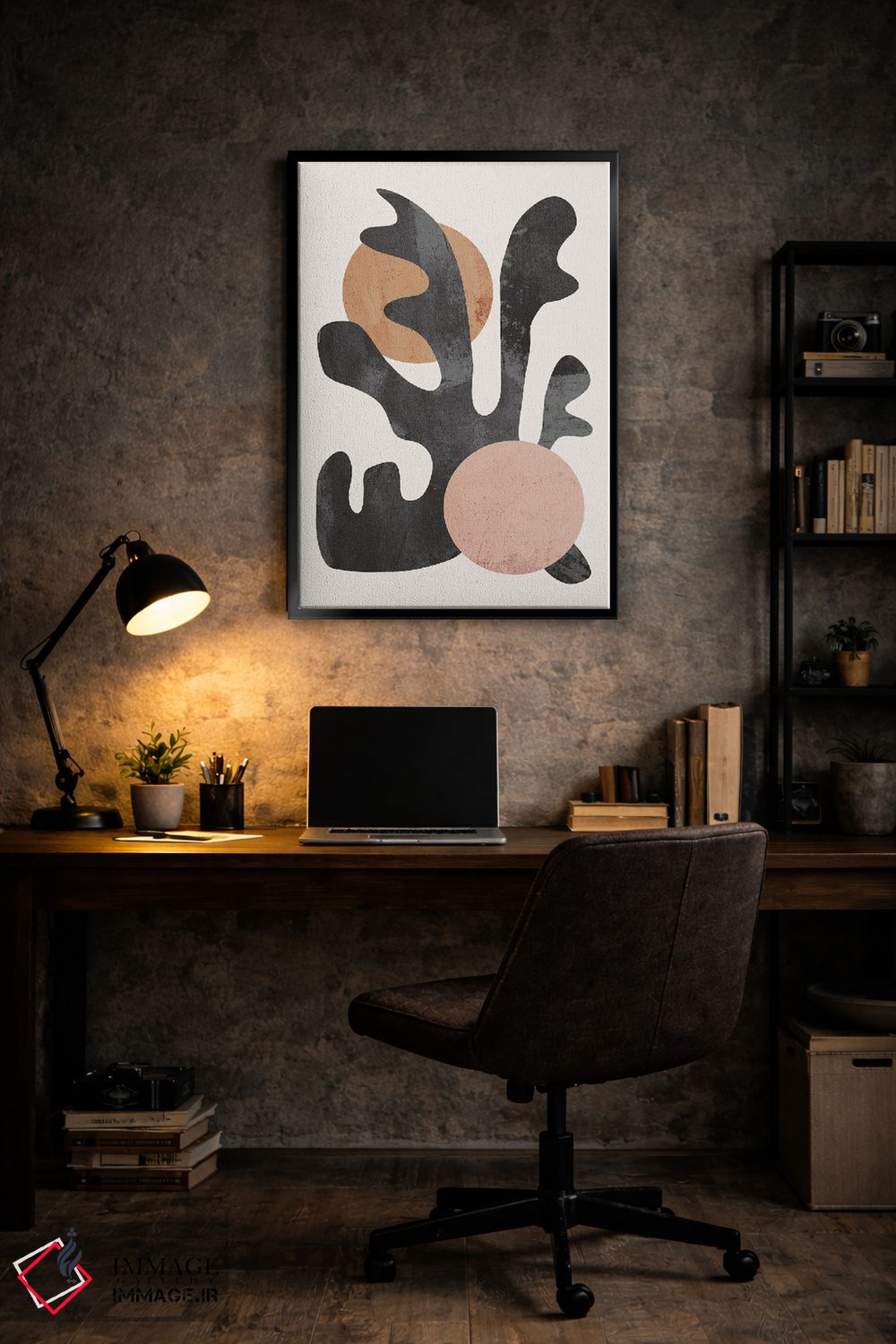 براساس پالت گرم اثر، قاب بلوط روشن (چوبی) پیشنهاد اول است و استخوانی ملایم مکمل. برای سفارشهای پروژهای با ابعاد و قابهای اختصاصی با ایماژ در تماس باشید.