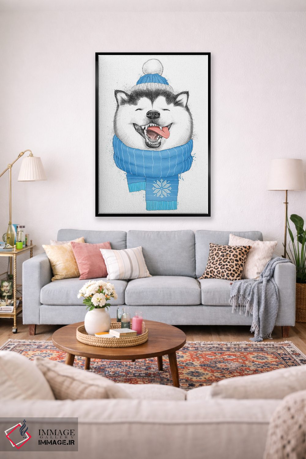 در «هاسکی شاد» اثرِ «نیکیتا کورنکوف»، حضور حیوانات در کنار رنگهای خنثی، تضاد دلچسبی میسازد؛ برای اتاق بازی یا گوشهٔ مطالعه انتخابی خوشسلیقه است. به دیوار، قصه میدهد—اما قصهای آرام و شیک.