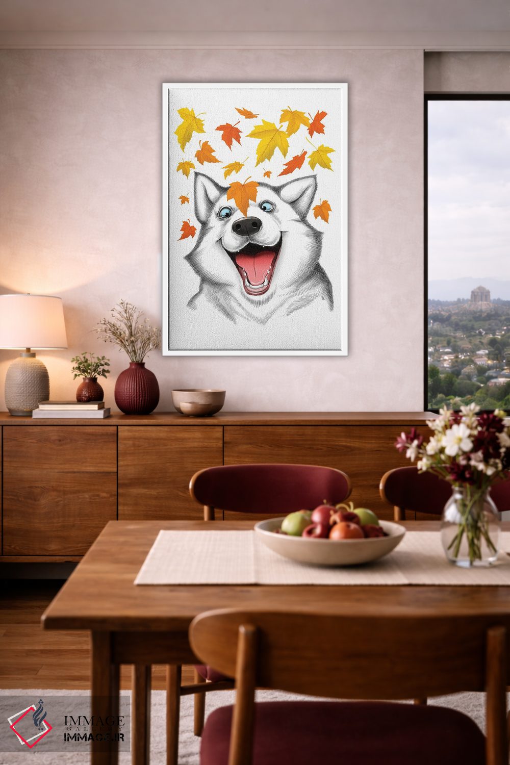 «هاسکی پاییزی» اثرِ «نیکیتا کورنکوف» میتواند به دیوار، انرژیِ نرم و زنده بدهد؛ برای هدیهدادن به دوستداران حیوانات پیشنهاد میشود. در کنار گیاهان و نور طبیعی، جذابتر هم میشود.