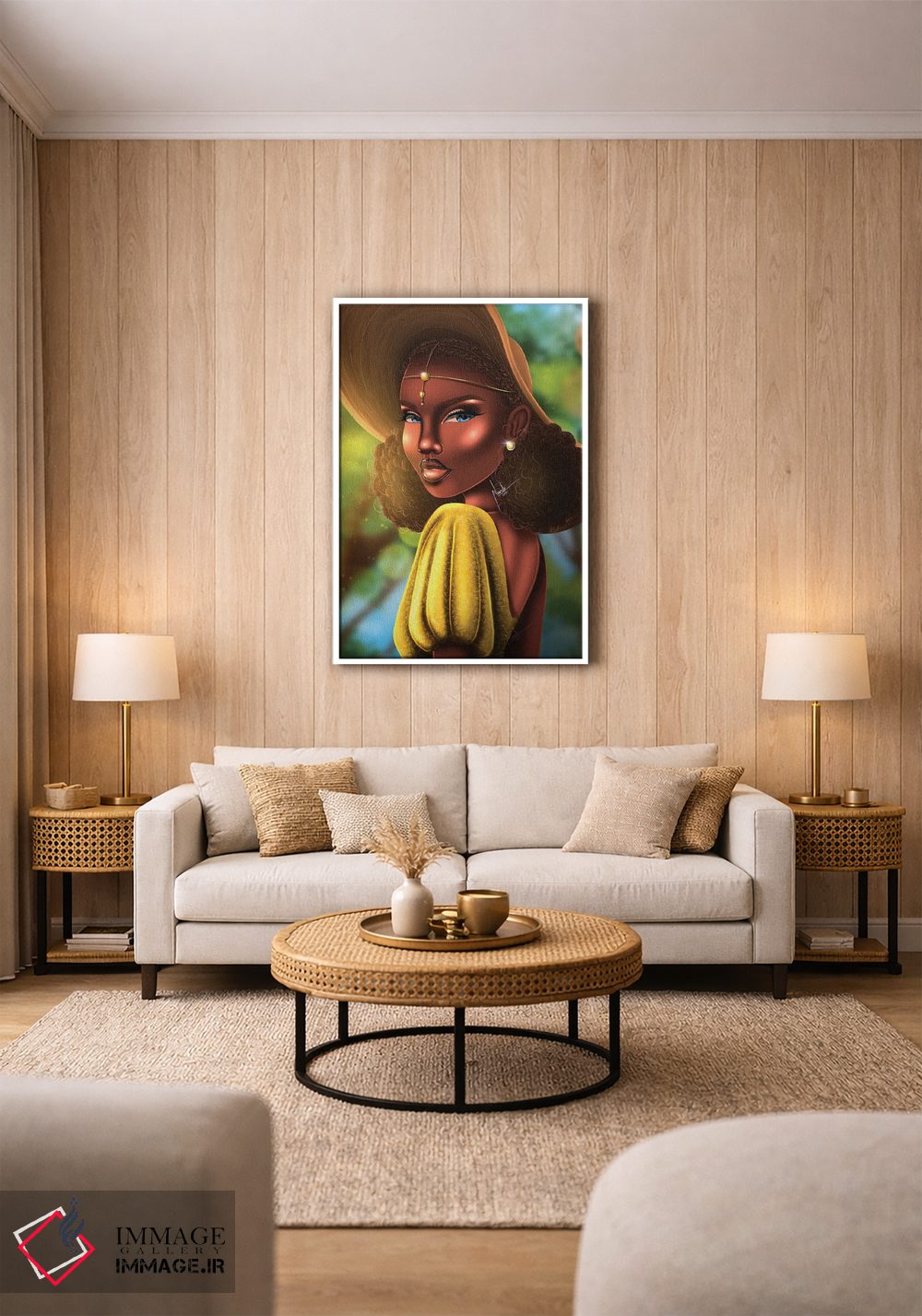 براساس پالت ترکیبی اثر، قاب تیک گرم (چوبی) پیشنهاد اول است و مشکی مات (فریم متوسط) مکمل. برای سفارشهای پروژهای با ابعاد و قابهای اختصاصی با ایماژ در تماس باشید.