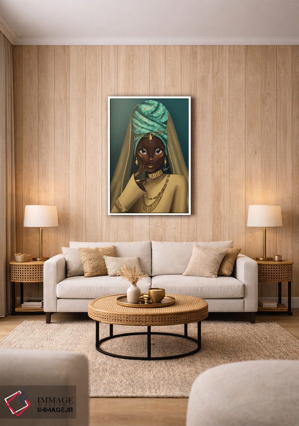 براساس پالت ترکیبی اثر، قاب تیک گرم (چوبی) پیشنهاد اول است و مشکی مات (فریم متوسط) مکمل. برای سفارشهای پروژهای با ابعاد و قابهای اختصاصی با ایماژ در تماس باشید.