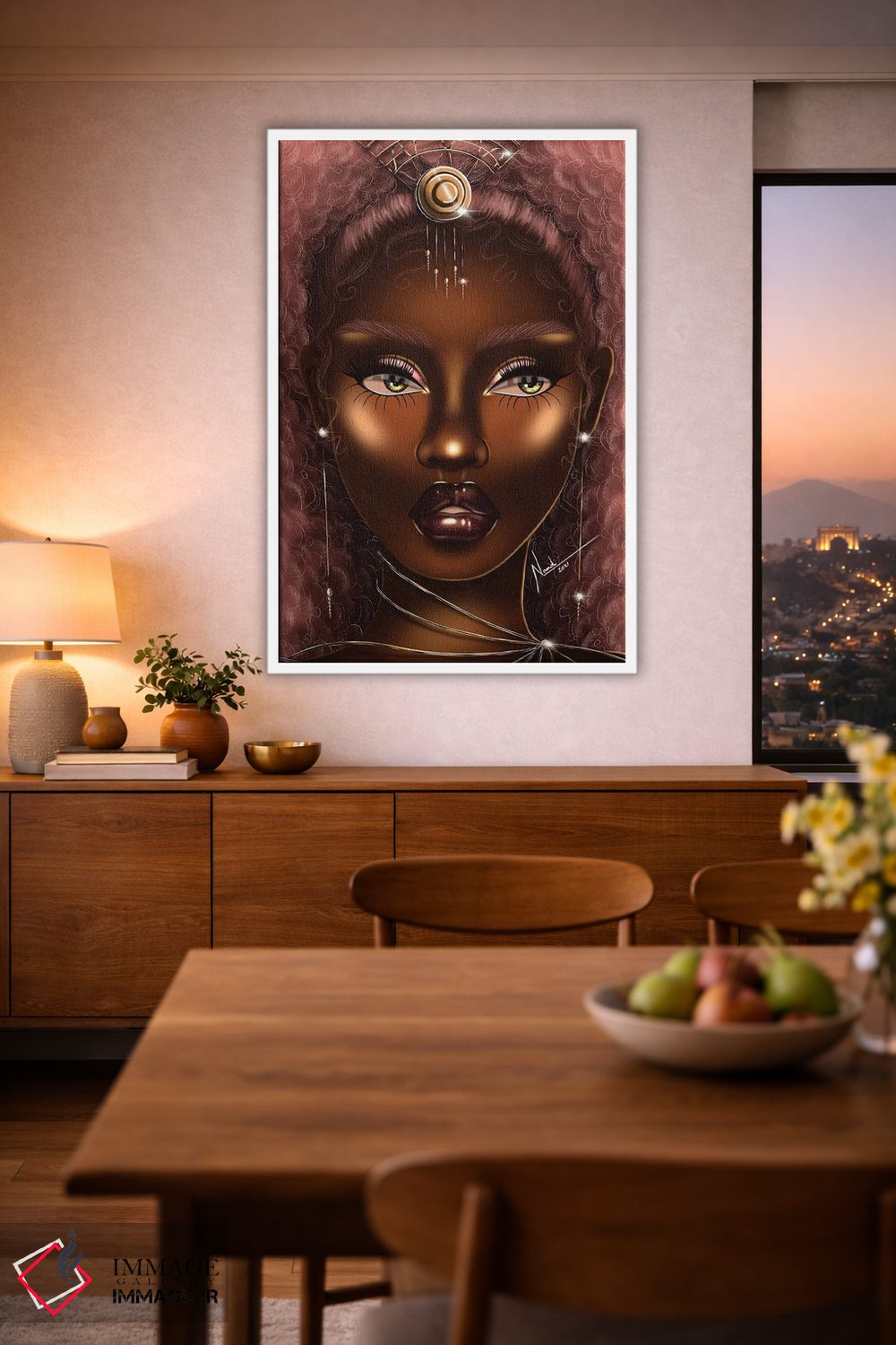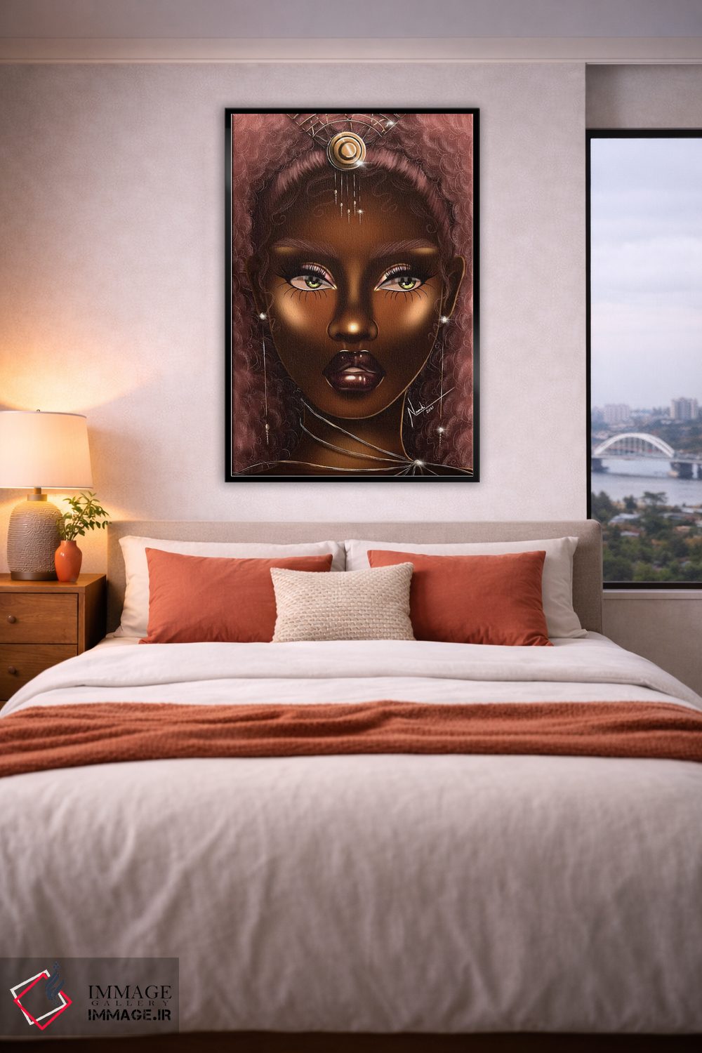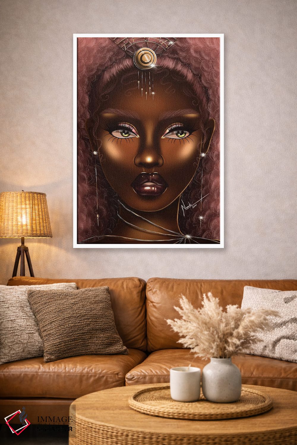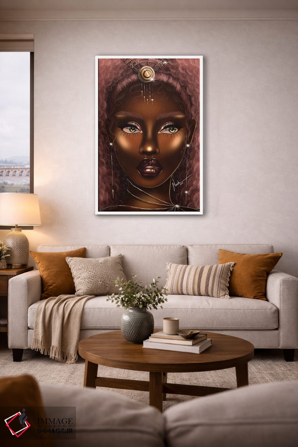 براساس پالت گرم اثر، قاب تیک گرم (چوبی) پیشنهاد اول است و مشکی مات (فریم متوسط) مکمل. برای سفارشهای پروژهای با ابعاد و قابهای اختصاصی با ایماژ در تماس باشید.