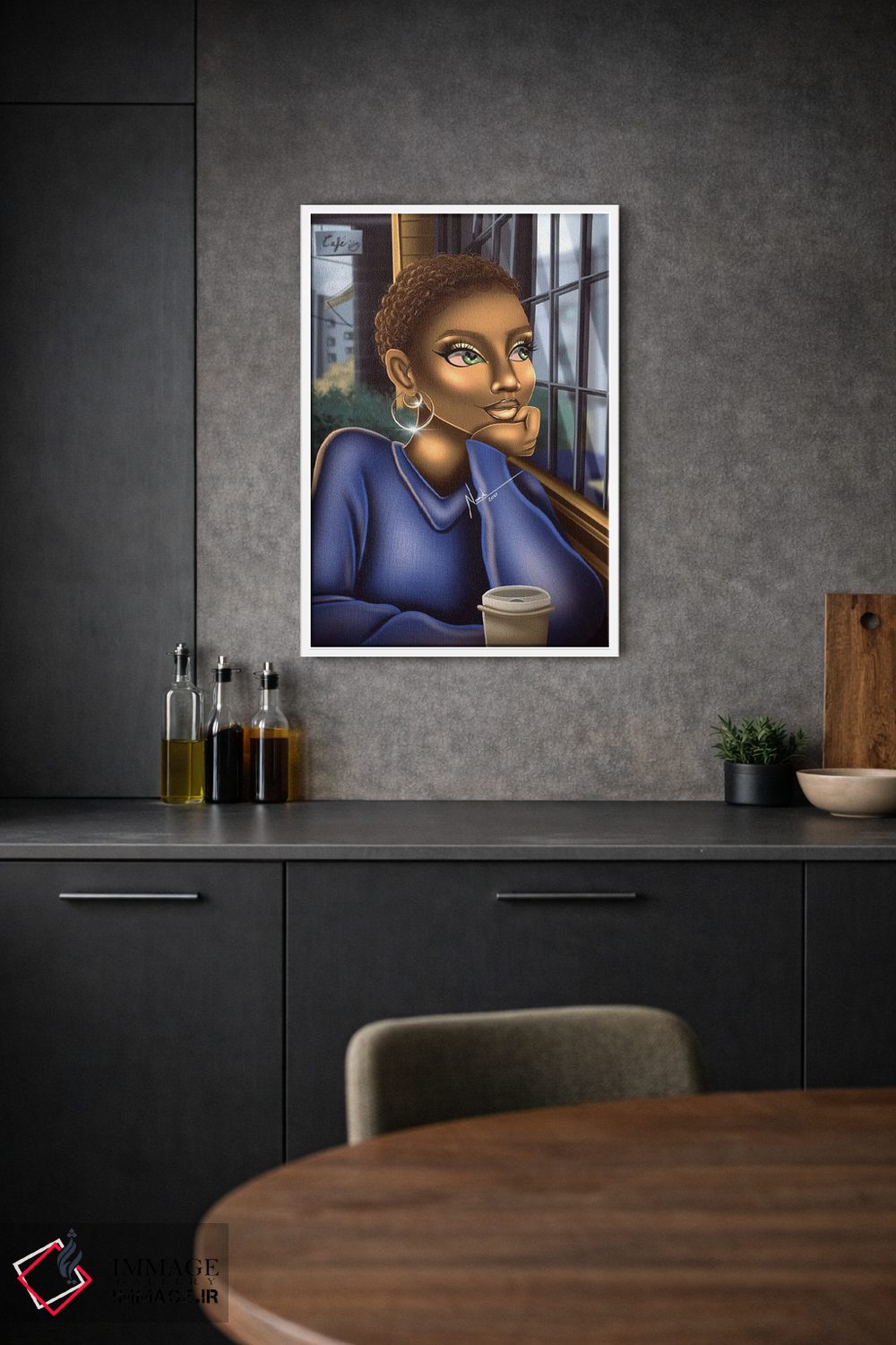 براساس پالت ترکیبی اثر، قاب تیک گرم (چوبی) پیشنهاد اول است و مشکی مات (فریم متوسط) مکمل. برای سفارشهای پروژهای با ابعاد و قابهای اختصاصی با ایماژ در تماس باشید.