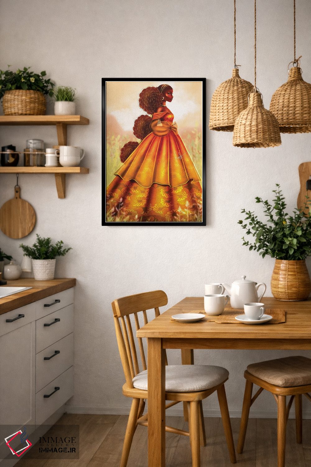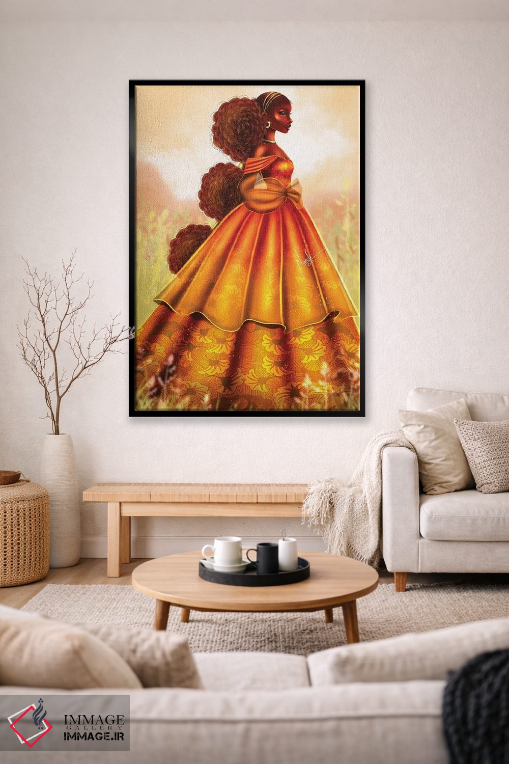 براساس پالت گرم اثر، قاب تیک گرم (چوبی) پیشنهاد اول است و مشکی مات (فریم متوسط) مکمل. برای سفارشهای پروژهای با ابعاد و قابهای اختصاصی با ایماژ در تماس باشید.