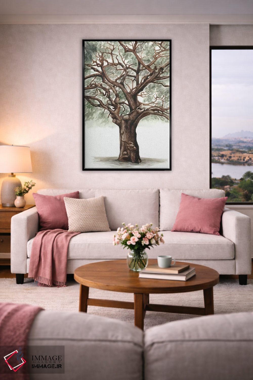برای اتاق خواب و نشیمنهای آرام، «ترکیب درخت بلوط دوم» اثرِ «نائومی مککاویت» جزئیات نزدیک را چشمنواز نشان میدهد؛ برای کنار میز آرایش یا کنسول انتخابی خوشسلیقه است. همیشه بهروز میماند و با فصلها خوب کنار میآید.