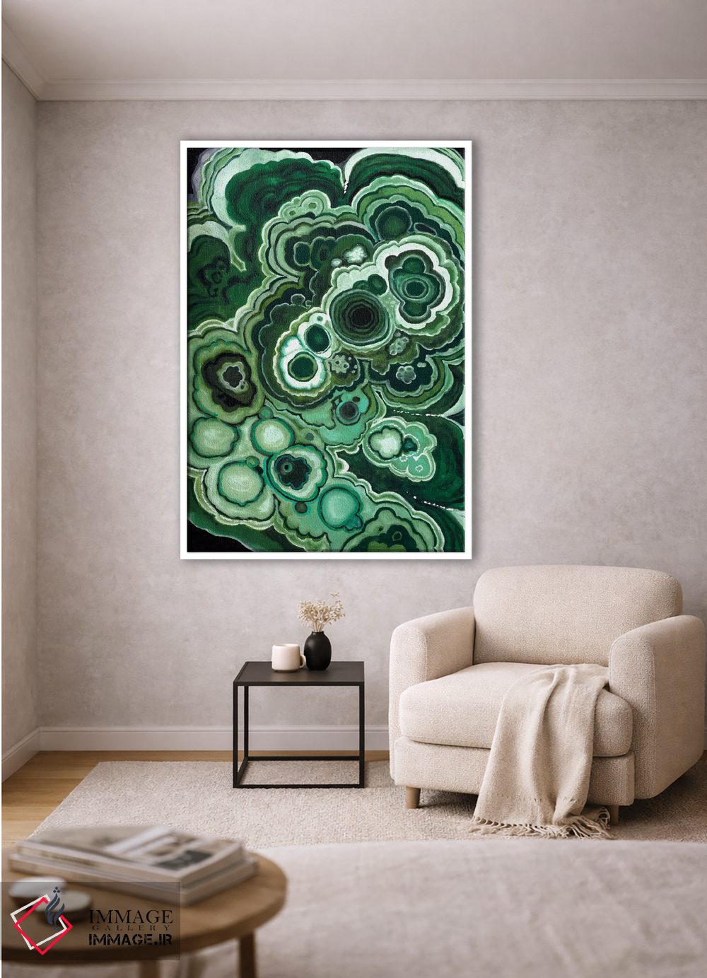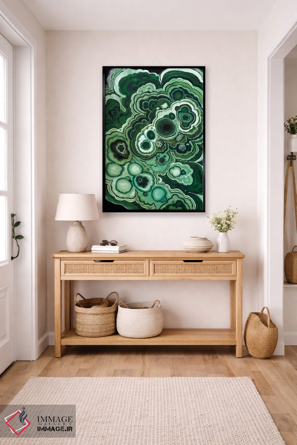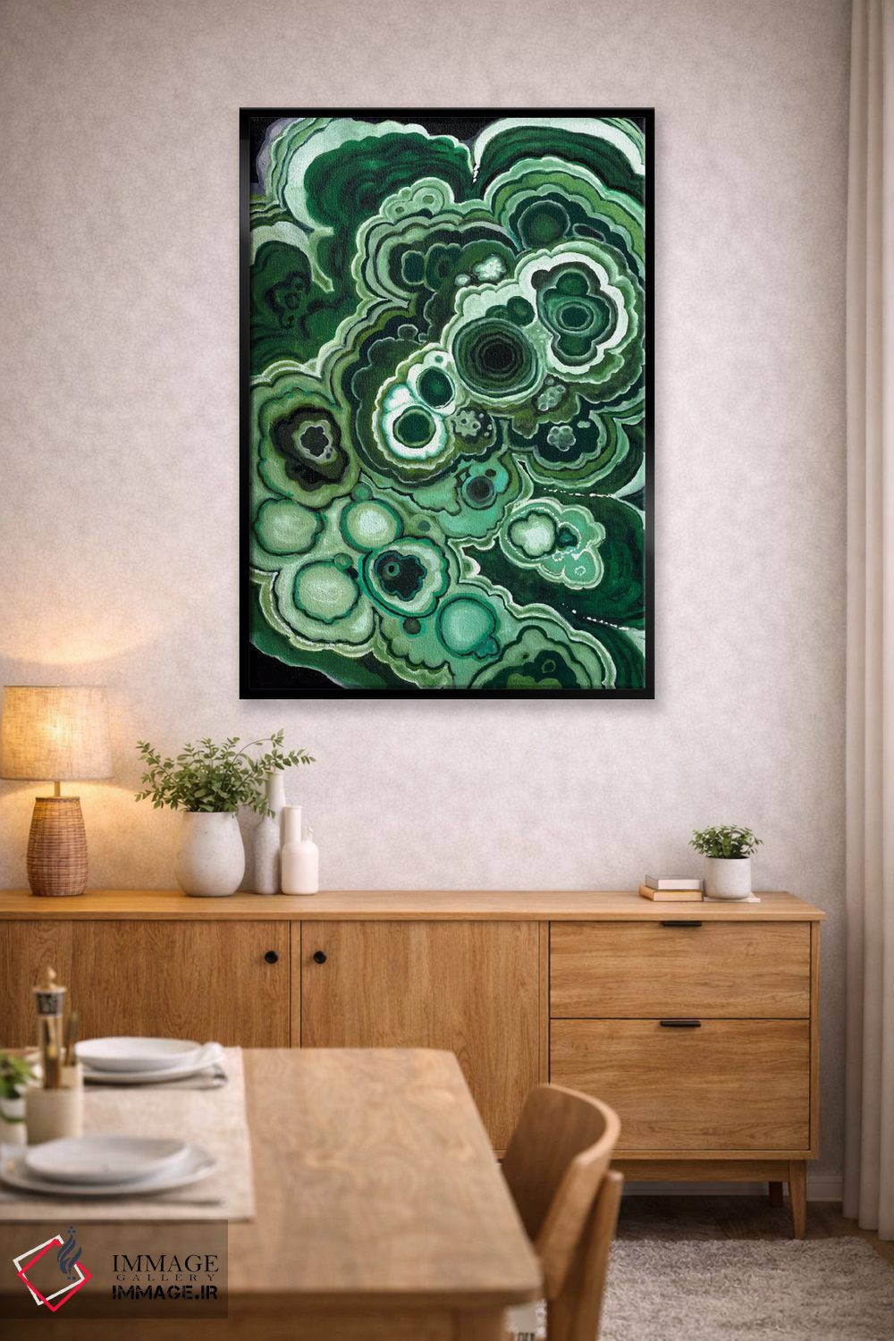 اگر دنبال یک قابِ انتزاعیِ شیک هستی، «مالاکیت یک (سنگ سبز)» اثرِ «نائومی مککاویت» با زبان هنری انتخابی مطمئن است.