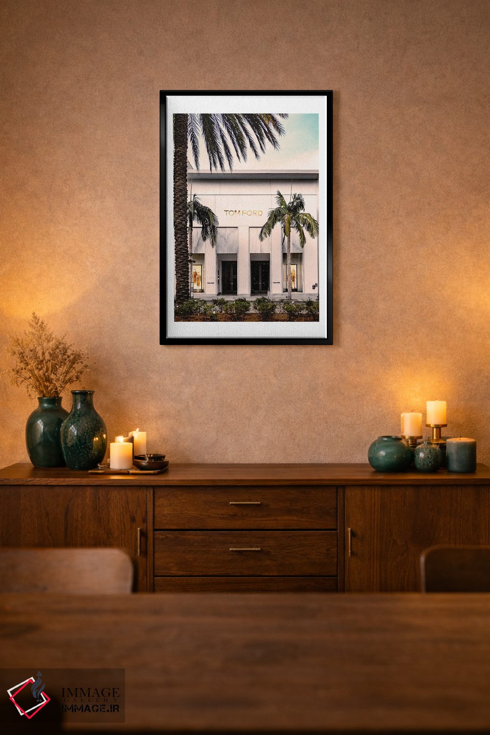 برای فضاهای مینیمال، «ویترین فروشگاه مد تام فورد» اثرِ «نائومی دیویس» حس معاصر و منظم به دکور بدهد؛ برای محیطهای مدرن انتخابی خوشسلیقه است. با قاب مشکی مات، جلوهٔ تمیزتری پیدا میکند.