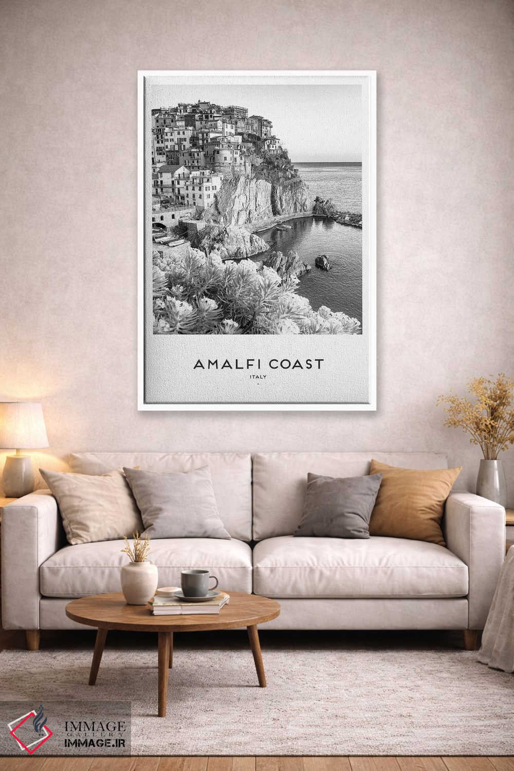 تابلو دکوراتیو ساحل آمالفی سیاه و سفید اثر نائومی دیویس