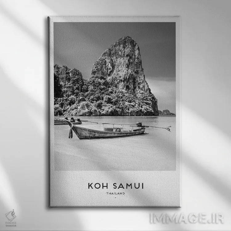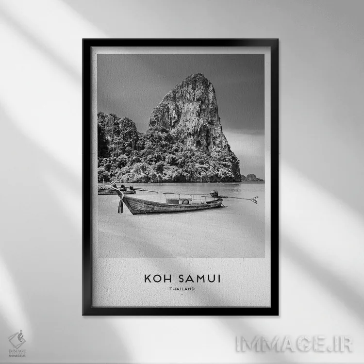 در «کوه سامویی تایلند (سیاه و سفید)»، اثرِ «نائومی دیویس» این اثر را با زبان سیاهوسفید ارائه میکند؛ برای دکورهای کلاسیک—مدرن یک انتخاب مطمئن و هماهنگپذیر است.