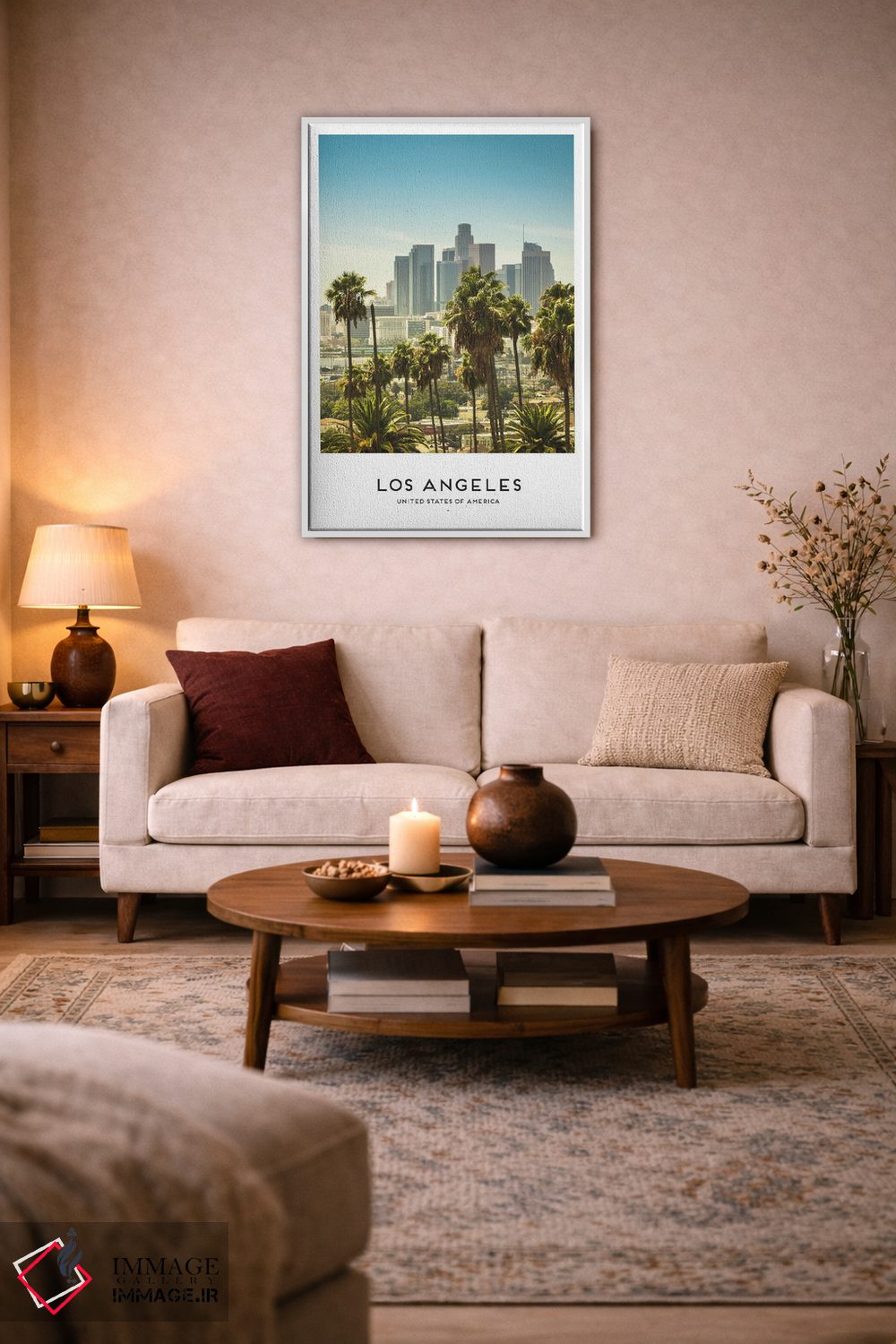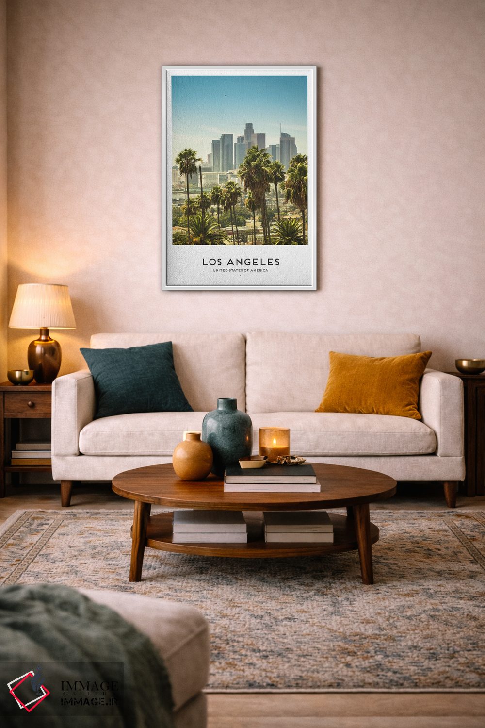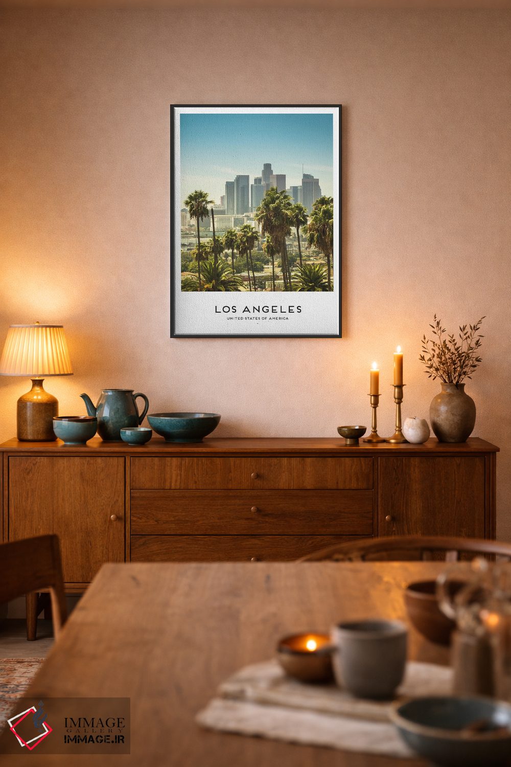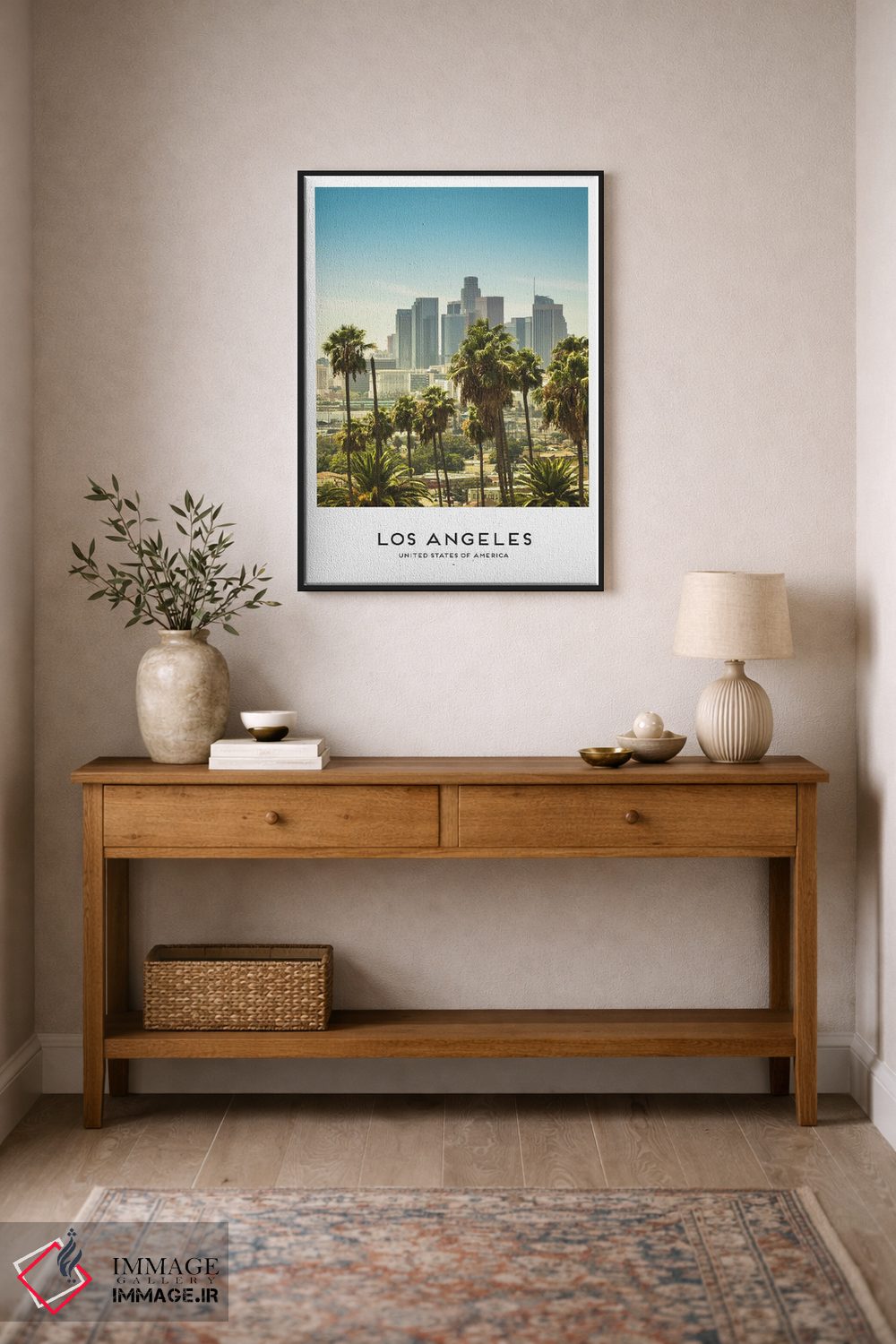 این تابلو با عنوان «لس آنجلس آمریکا» اثرِ «نائومی دیویس» جلوهٔ دیوار را منسجمتر میکند؛ برای دیوارهای گالریوار و ترکیب چند اثر پیشنهاد میشود. اگر دنبال زیباییِ بیادعا هستید، این اثر درست مینشیند.