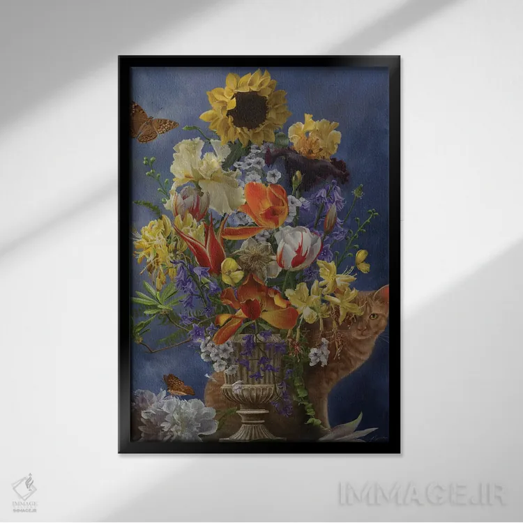براساس پالت ترکیبی اثر، قاب تیک گرم (چوبی) پیشنهاد اول است و مشکی مات (فریم متوسط) مکمل. برای سفارشهای پروژهای با ابعاد و قابهای اختصاصی با ایماژ در تماس باشید.