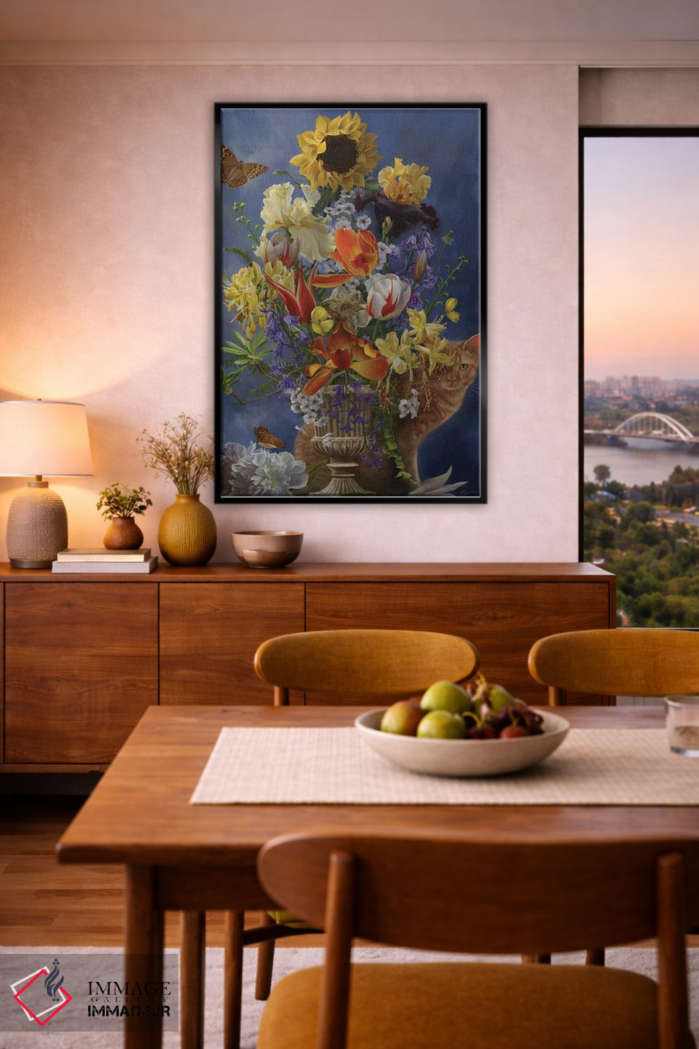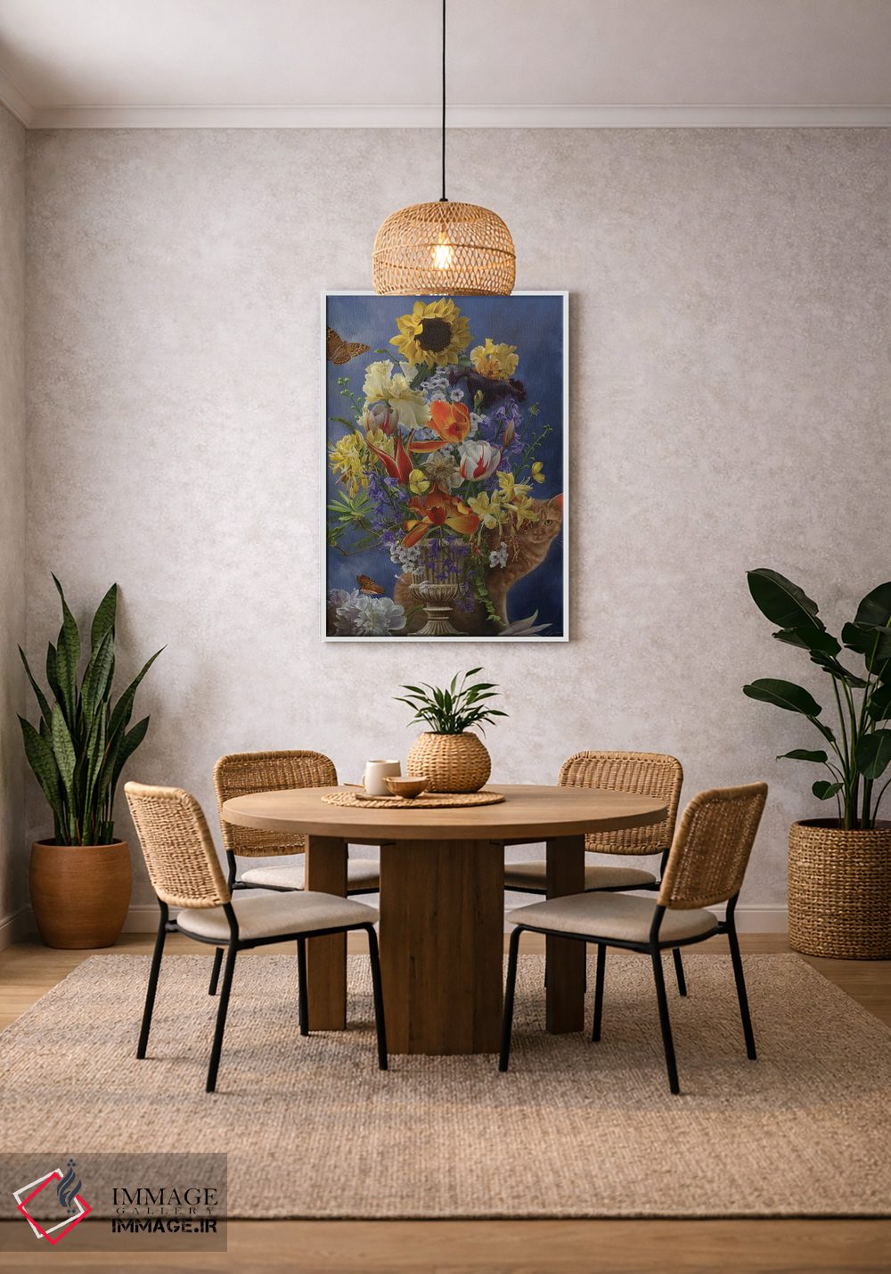 بوم گالری ایماژ طوری طراحی شده که اثر روی دیوار «پرداختشده» و حرفهای دیده شود—نه پرزرقوبرقِ بیپایه؛ بلکه دقیق و خوشپرداخت. بافت ظریف کنواس کمک میکند حس اثر هنری را در نگاه نزدیک نگه میدارد بهخصوص وقتی نور موضعی ملایم داشته باشید. با چاپ جیکلی (Giclée)، گذارهای رنگی را نرمتر میکند و برای فضاهای رسمیتر هم انتخاب مطمئنی است. در نهایت، نتیجه چیزی شبیه تفاوت نسخهی معمولی با نسخهی باکیفیتتر است: نه رنگِ بیشتر، بلکه پرداخت بهتر؛ در کنار نورپردازی درست، جلوهی گالریوار بیشتری حس میشود. در دیوارهای خنثی (سفید، کرم، طوسی روشن) اثر تمیزتر خودش را نشان میدهد.