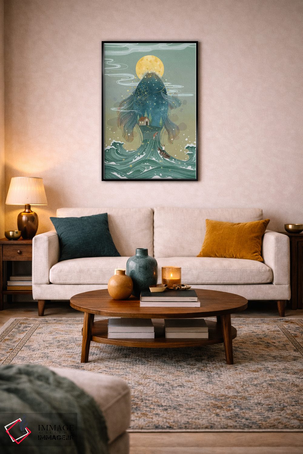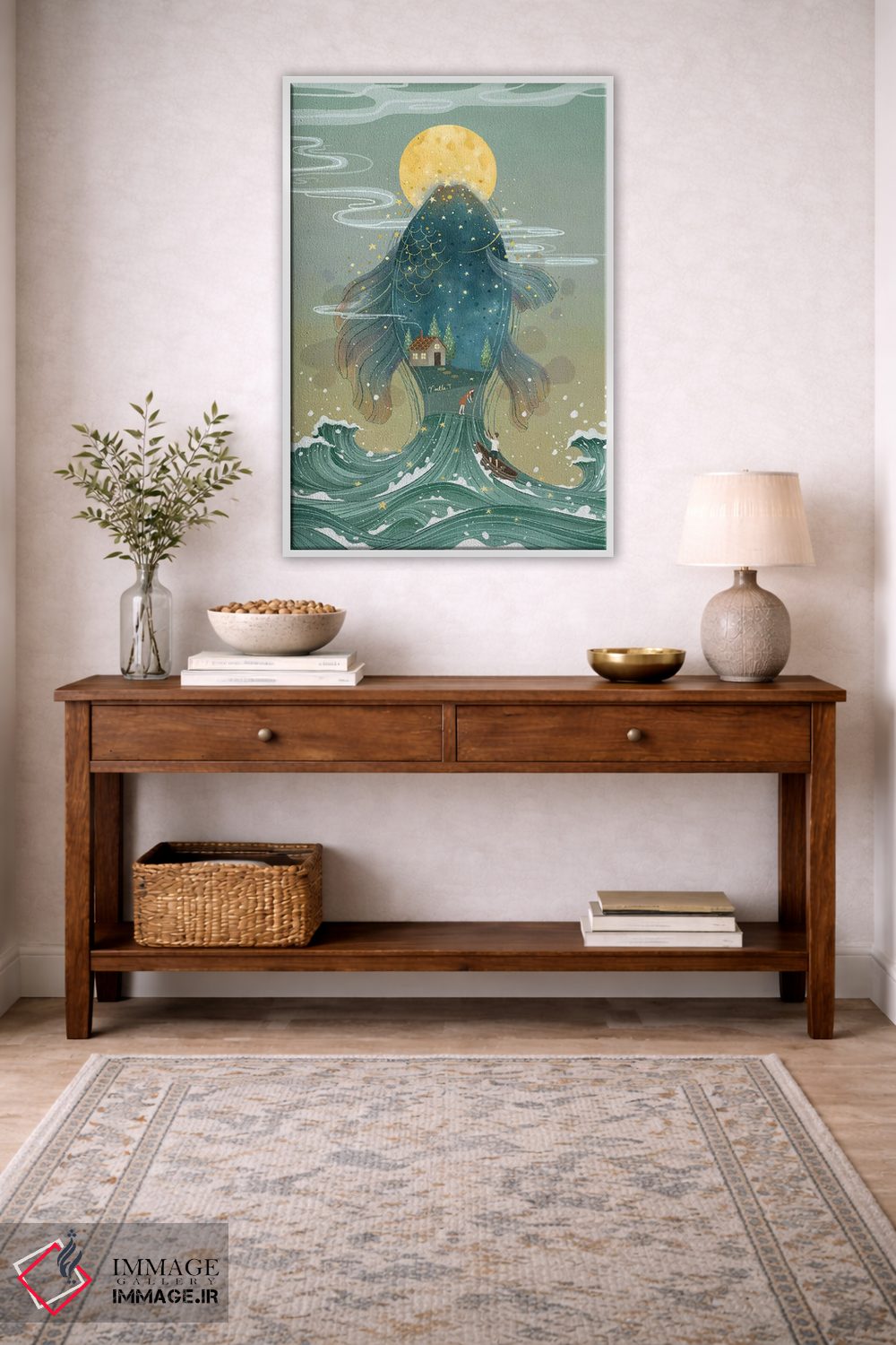 «امواج زیر ماه» اثرِ «نوئل. تی» میتواند کنار اکسسوریهای ساده و رنگهای خنثی، یک نقطهی تاکید شاد و قابلکنترل بسازد.