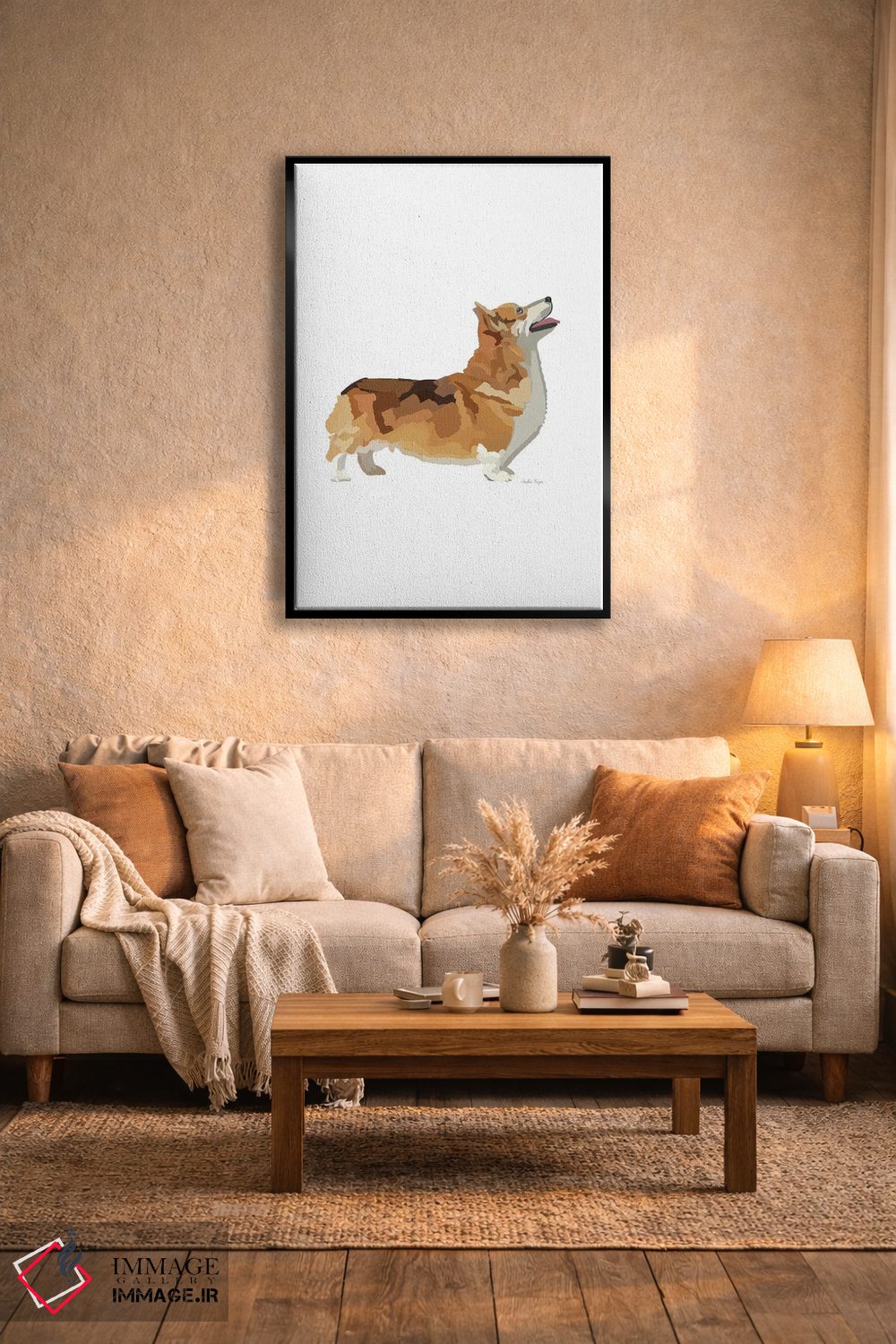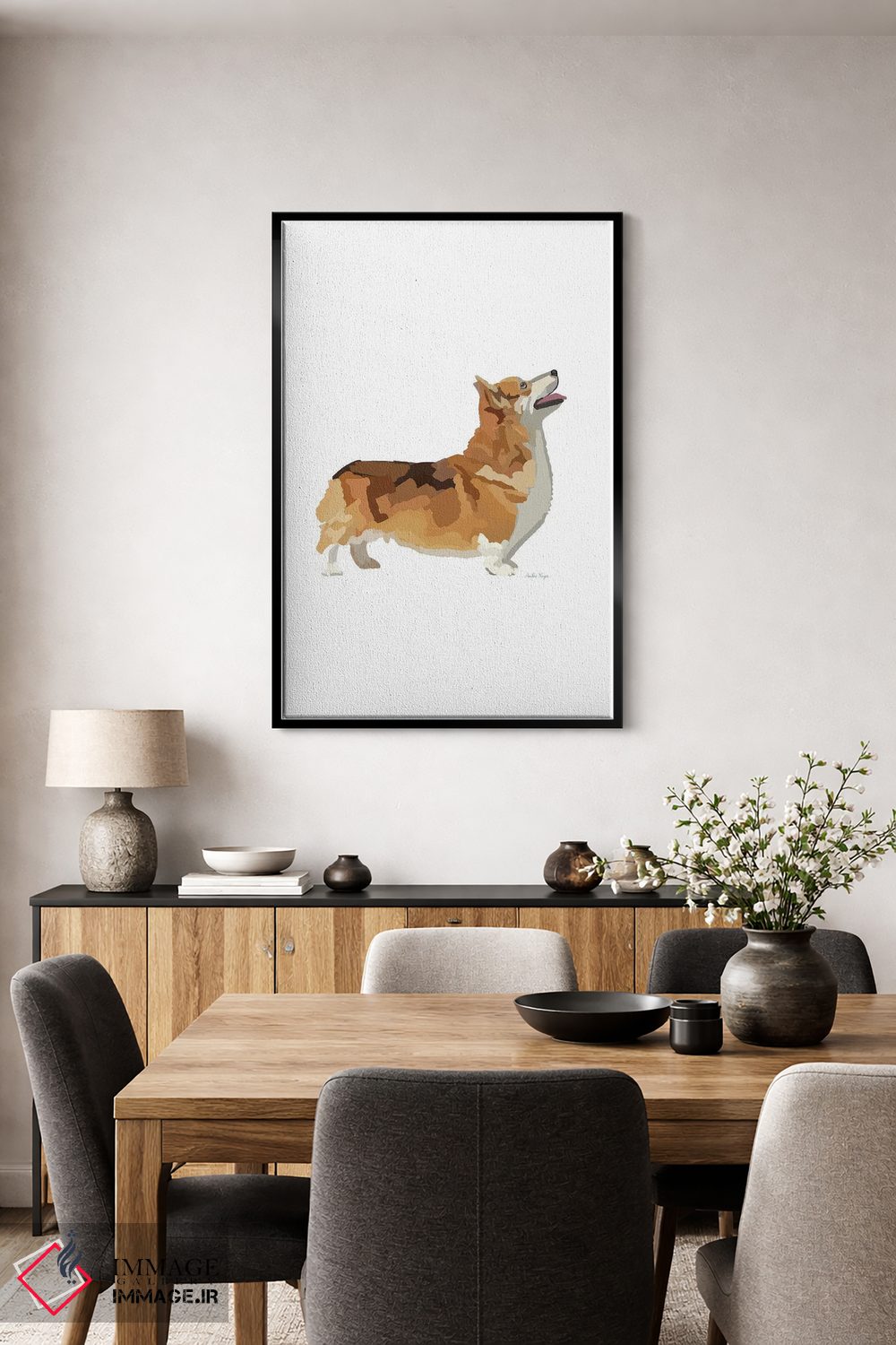 تابلو مینیمال سگ کورگی اثر آملیا نویز - نمای پرسپکتیو محصول
