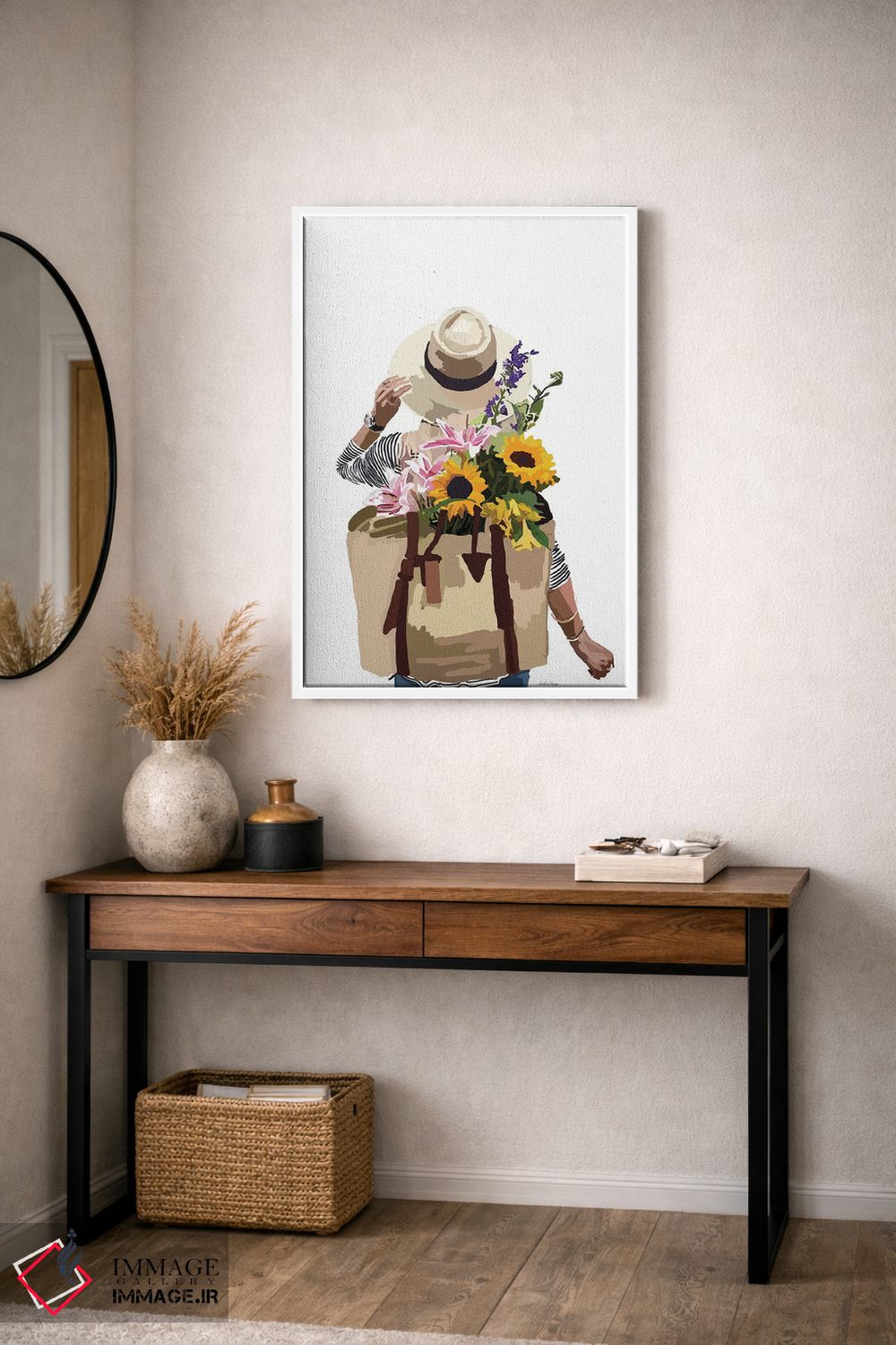 تابلو مینیمال کوله پشتی گلدار اثر آملیا نویز
