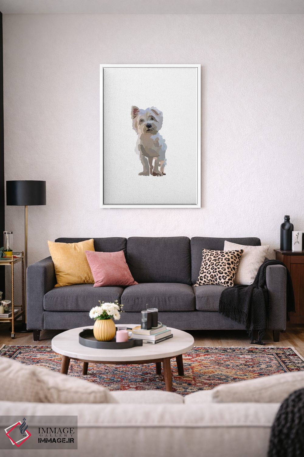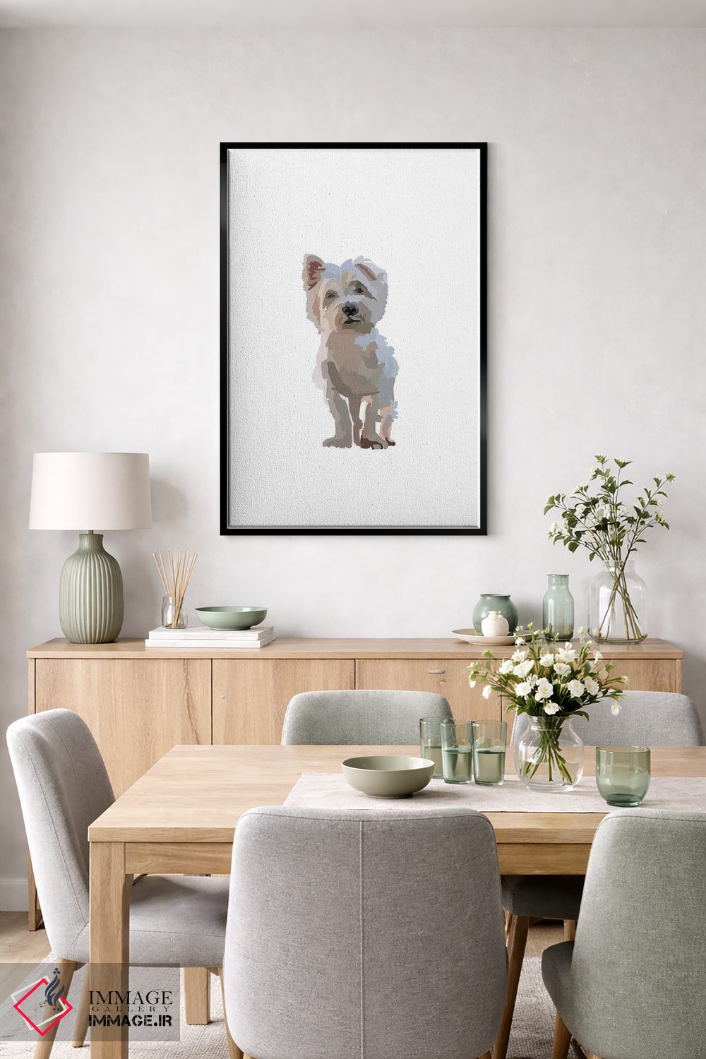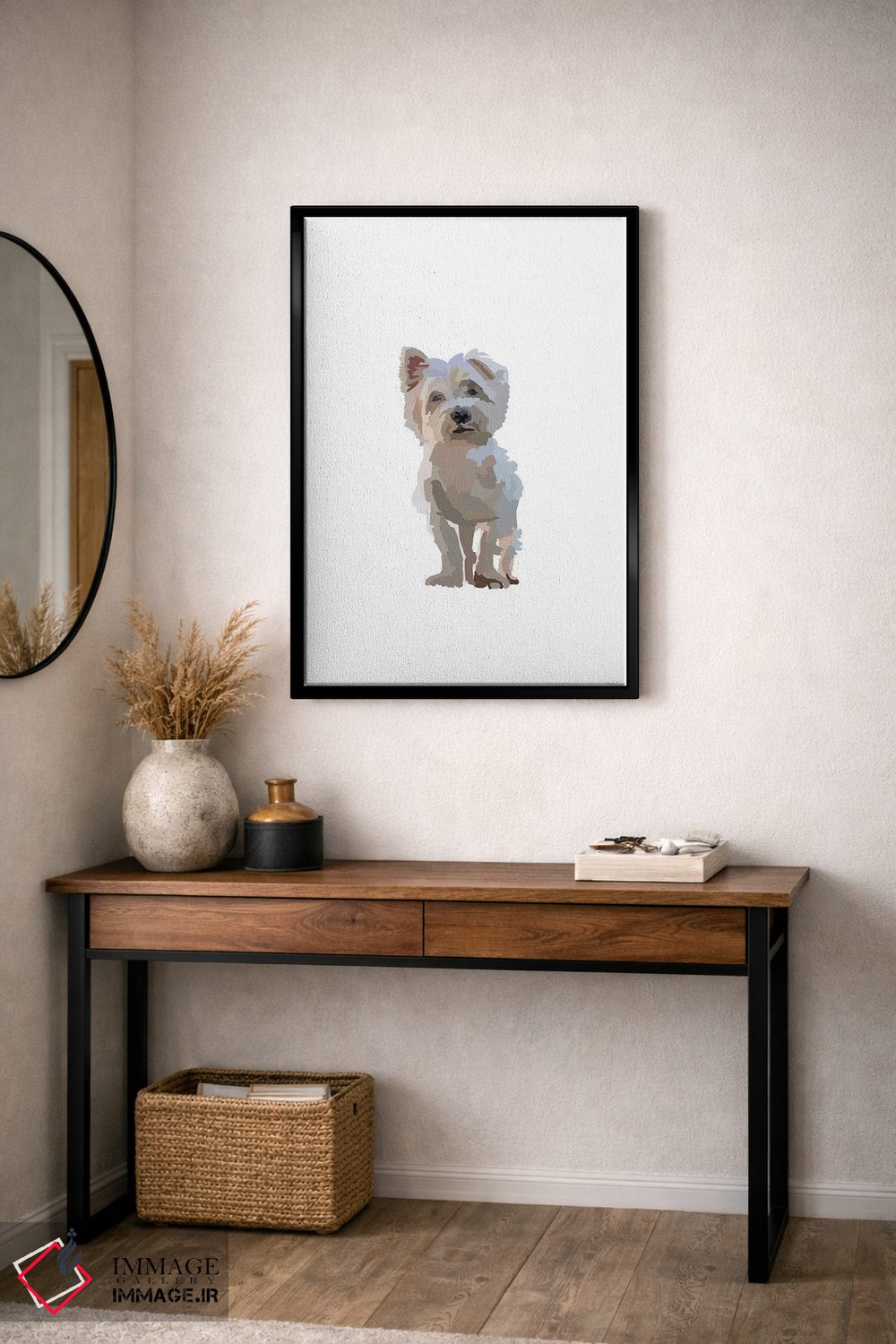 برای دیوارهای ساده، «تولهسگ سفید» اثرِ «آملیا نویز» بافت و جزئیات را طوری نشان میدهد که نگاه میماند؛ برای خانههایی با چوب و پارچههای گرم انتخابی خوشسلیقه است. هر بار نگاهش میکنید، یک جزئیات تازه به چشم میآید.