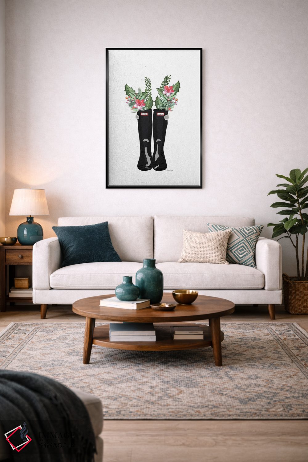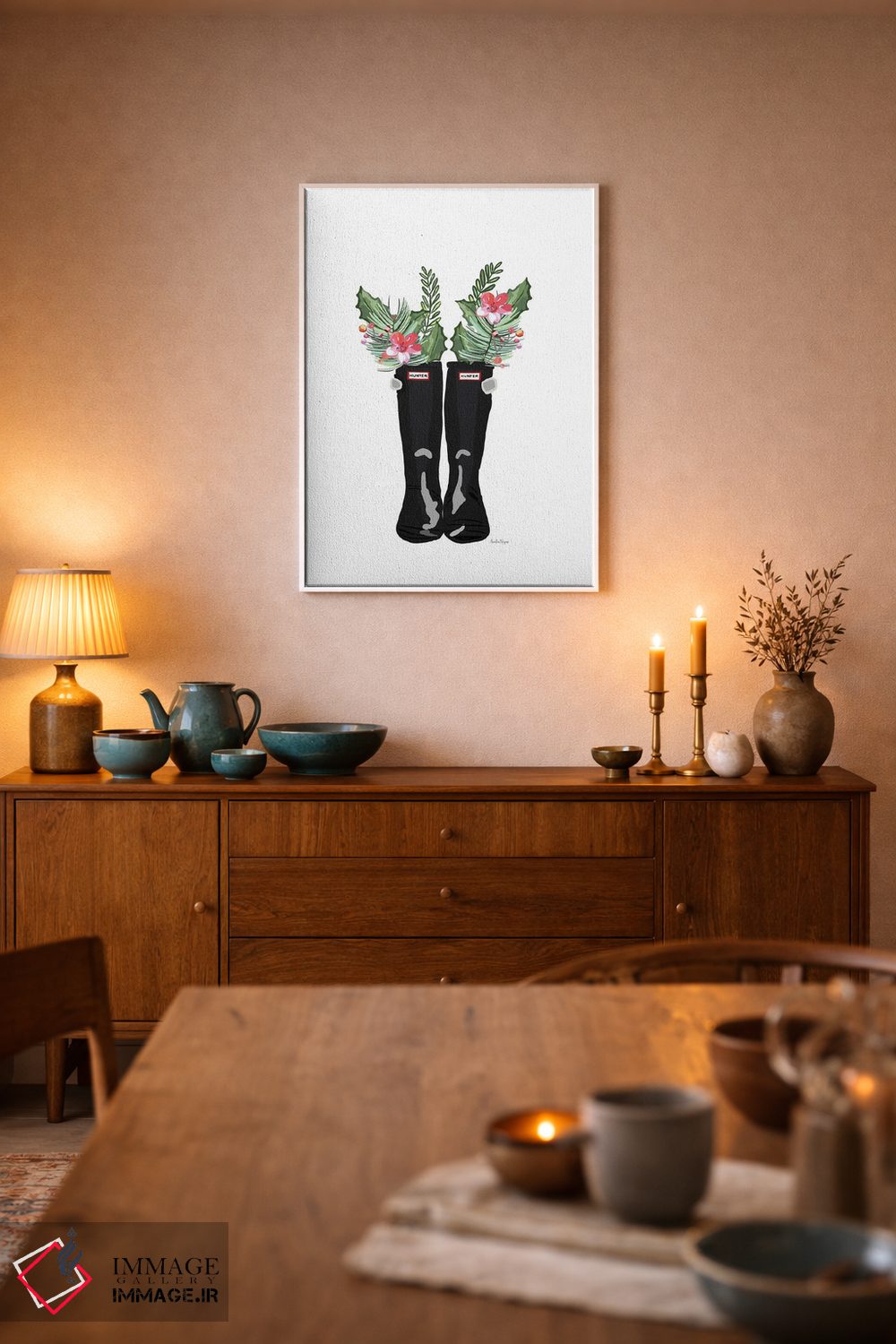 تابلو مینیمال چکمه های کریسمس اثر آملیا نویز - نمای پرسپکتیو محصول