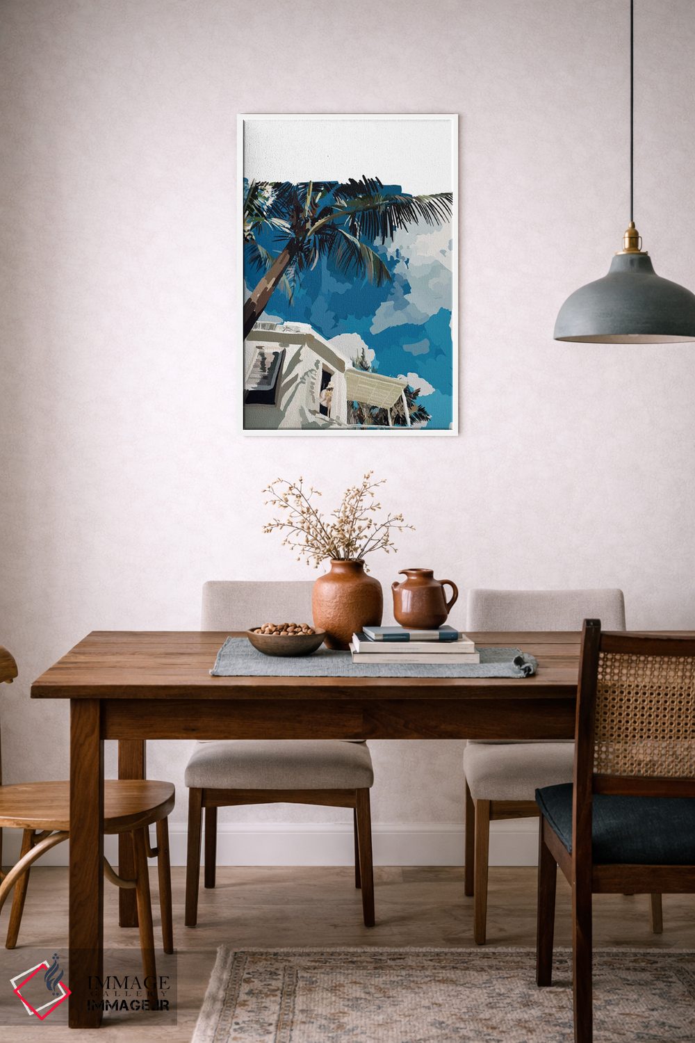 طراحی بوم گالری ایماژ بهگونهای است که اثر روی دیوار «پرداختشده» و حرفهای دیده شود—نه پرزرقوبرقِ بیپایه؛ بلکه دقیق و خوشپرداخت. با بافت ظریف کنواس، حس اثر هنری را در نگاه نزدیک نگه میدارد و برای محیطهای رسمیتر هم انتخاب مطمئنی است. ارائهی آماده نصب کمک میکند اثر را مرتب و یکدست روی دیوار مینشاند و همین «پرداخت» تفاوت را میسازد. این کیفیت برای چیدمانهای دقیقتر و پروژههای حرفهای خودش را بهتر نشان میدهد؛ و اگر بخواهید، میتوان چیدمان را برای گالریوال هم پیشنهاد داد. در کنار چوب و متریالهای طبیعی، بافت کنواس دلنشینتر دیده میشود.