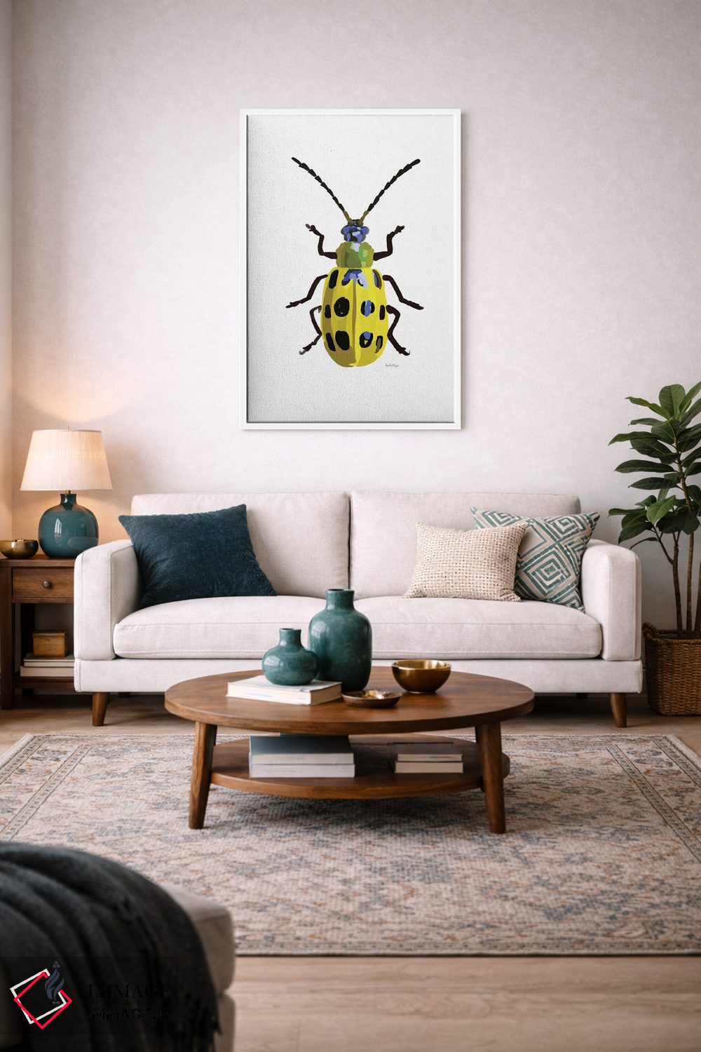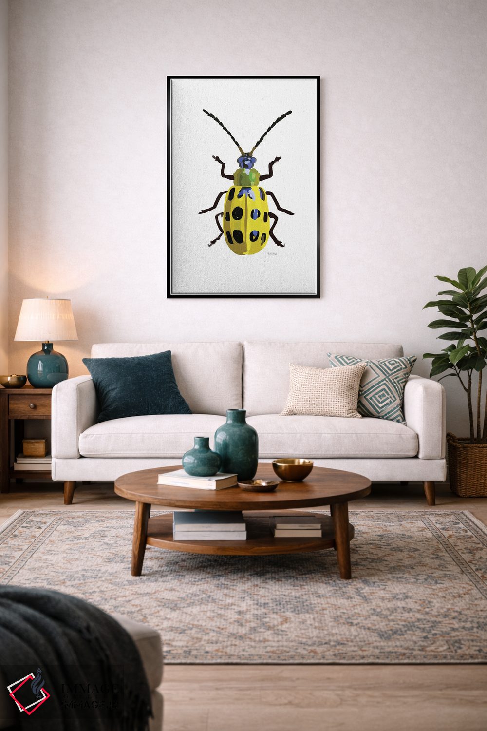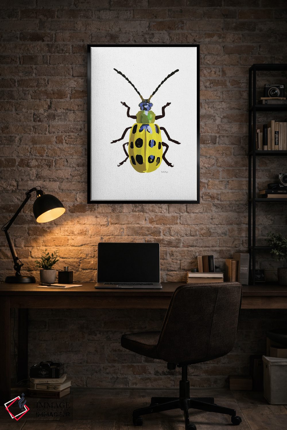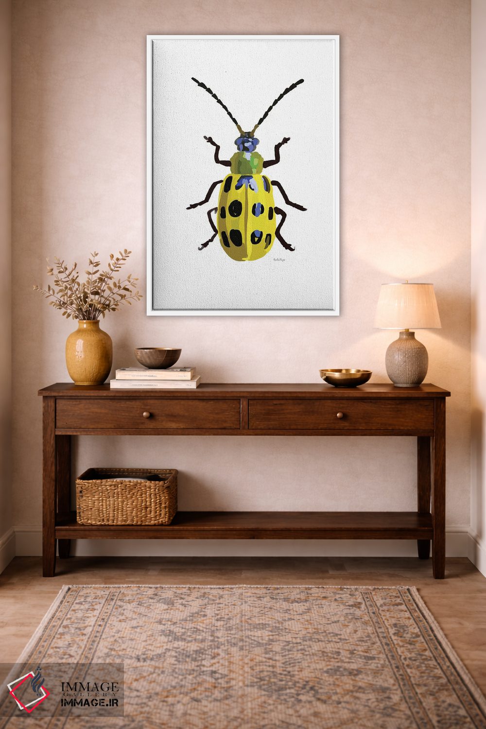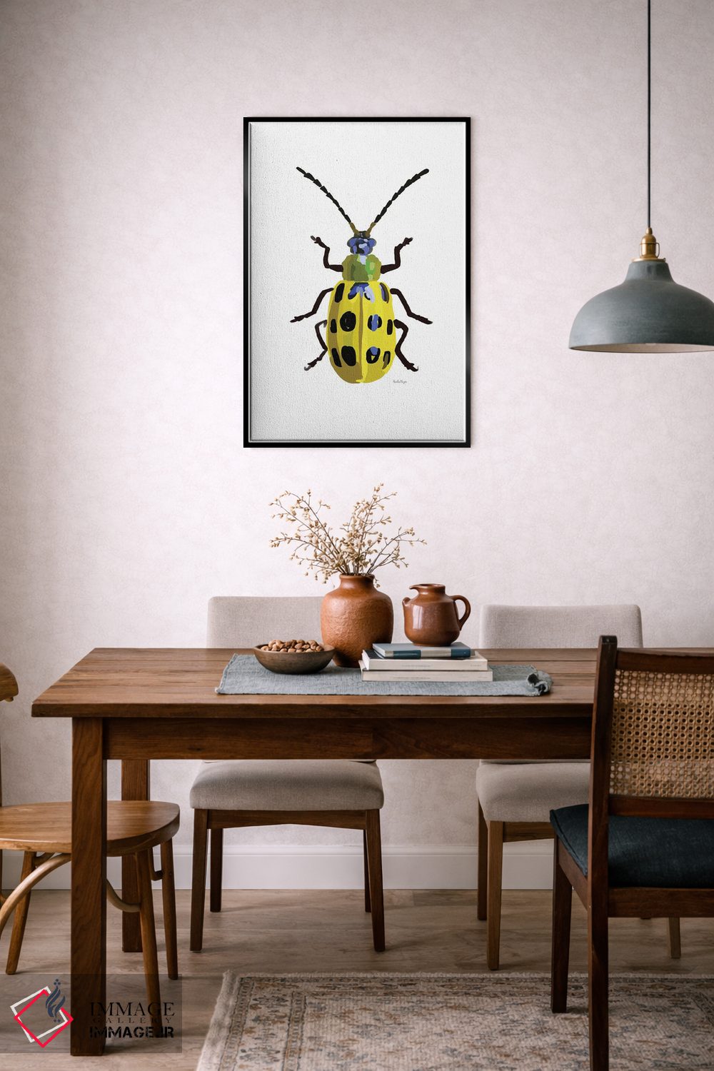 در «سوسک (۱)» اثرِ «آملیا نویز»، حضور حیوانات در کنار رنگهای خنثی، تضاد دلچسبی میسازد؛ برای دکورهای مدرن و مینیمال انتخابی خوشسلیقه است. برای دیوار گالریوار هم گزینهٔ خوبیست.