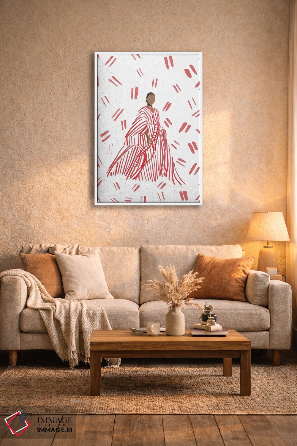 براساس پالت گرم اثر، قاب تیک گرم (چوبی) پیشنهاد اول است و مشکی مات (فریم متوسط) مکمل. برای سفارشهای پروژهای با ابعاد و قابهای اختصاصی با ایماژ در تماس باشید.