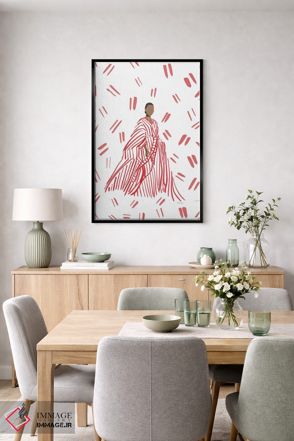 تابلو مینیمال مدگرای لباس شب قرمز اثر آملیا نویز